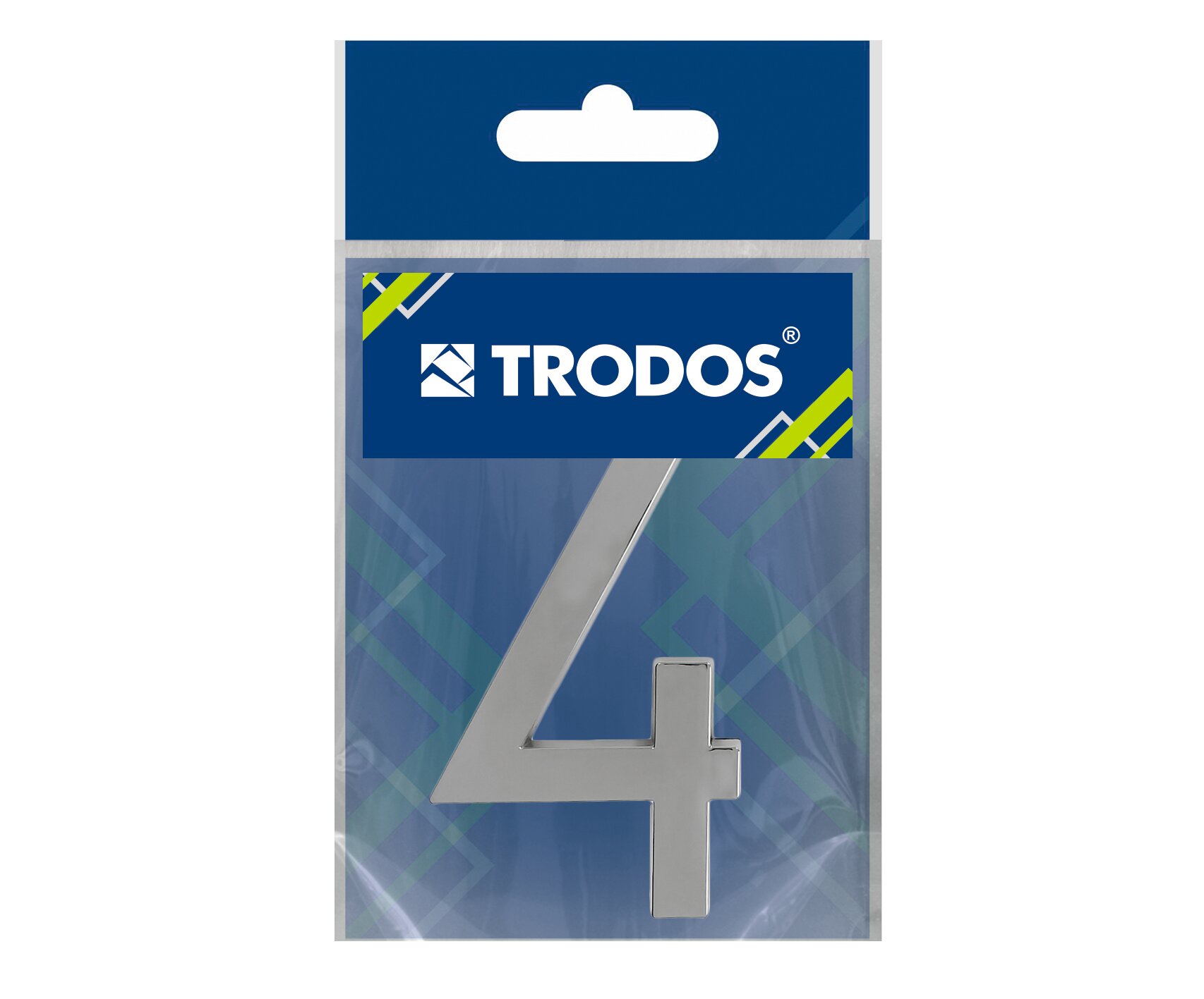 Номер дверной самоклеющийся, цифра на входную дверь "4" Trodos , модерн, хром информация:
