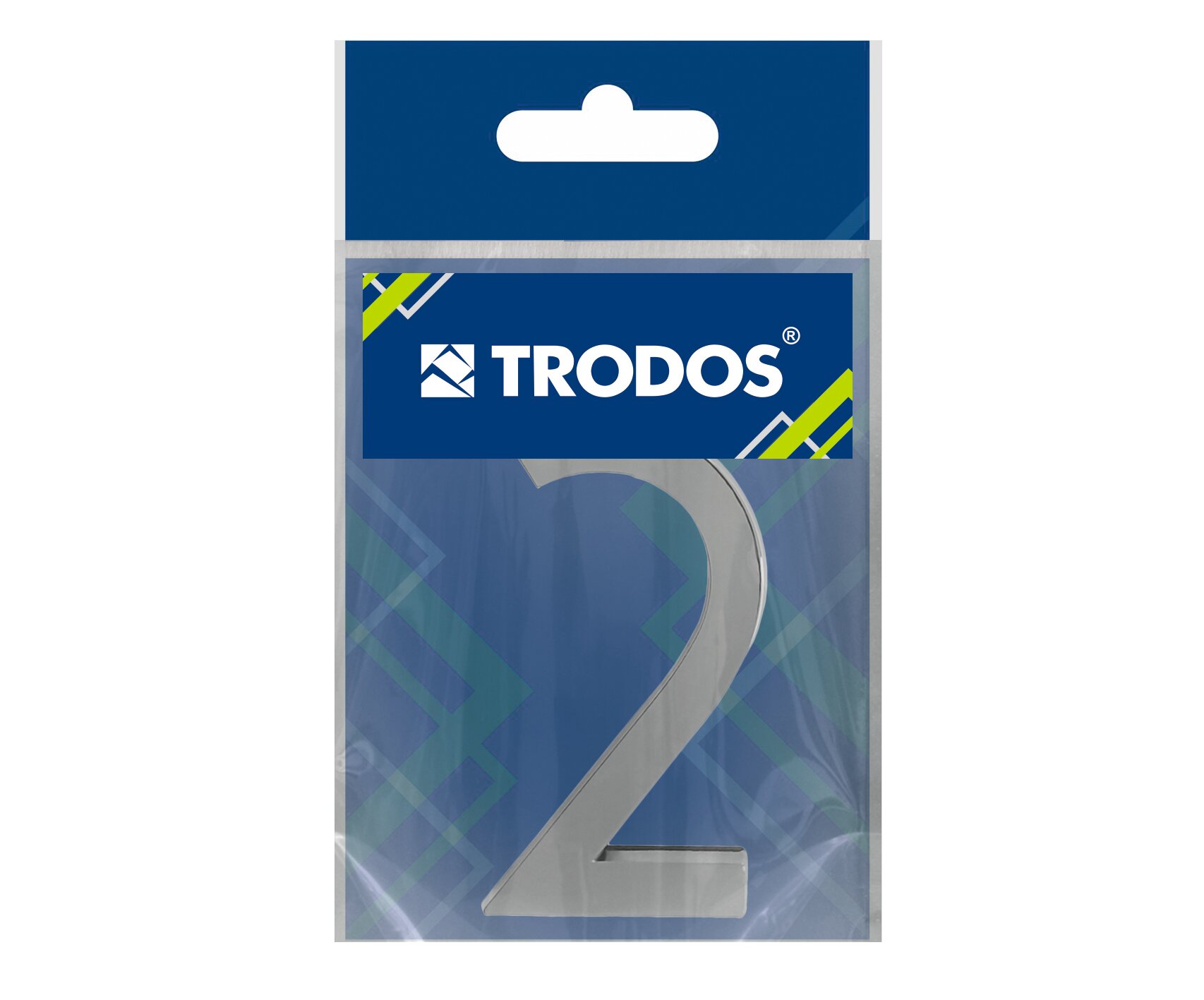 Номер дверной самоклеющийся, цифра на входную дверь "2" Trodos , модерн, хром информация: