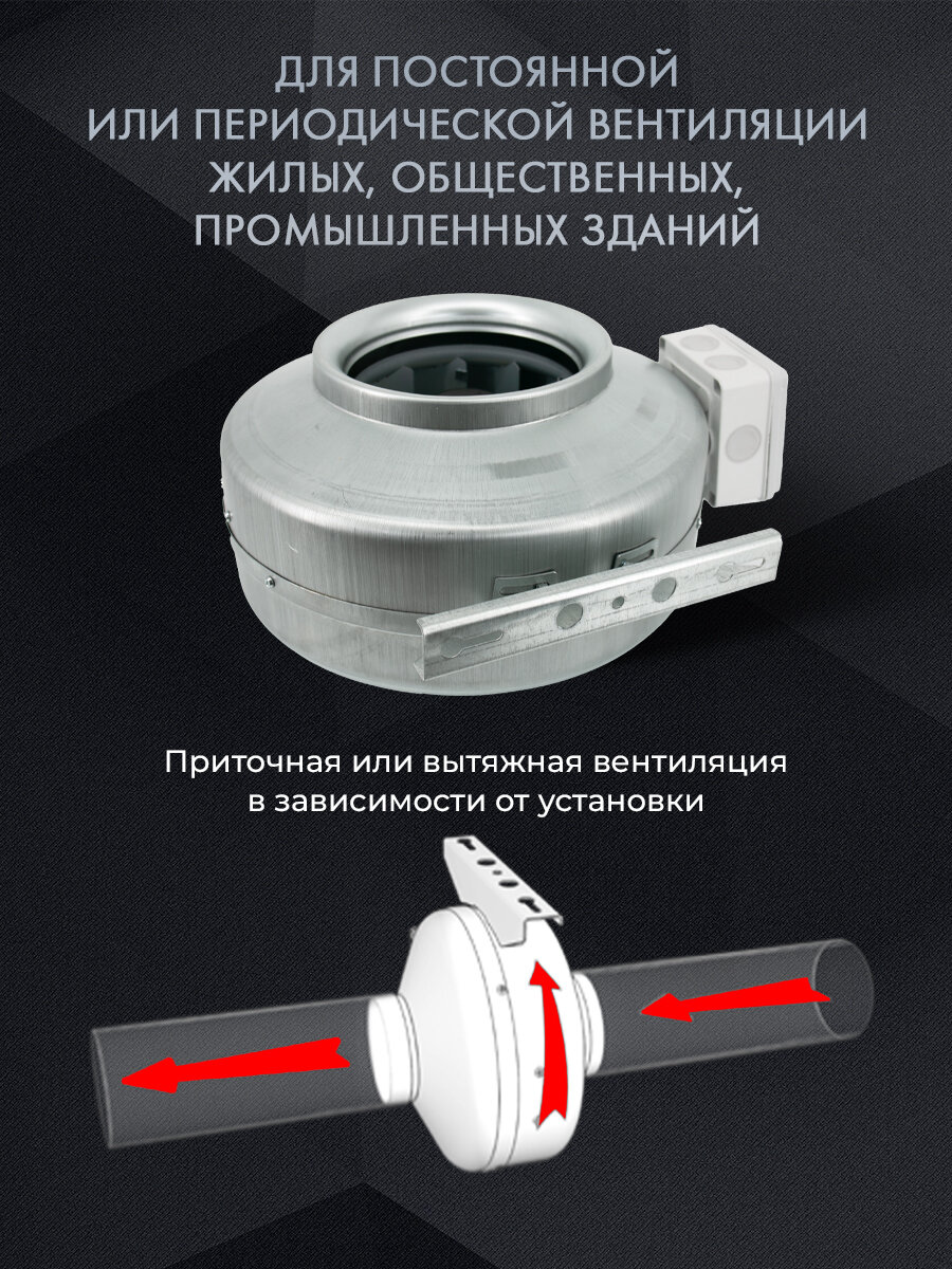 Вентилятор канальный VEO ВК 200, центробежный, D 200 мм, вытяжной, приточный информация: