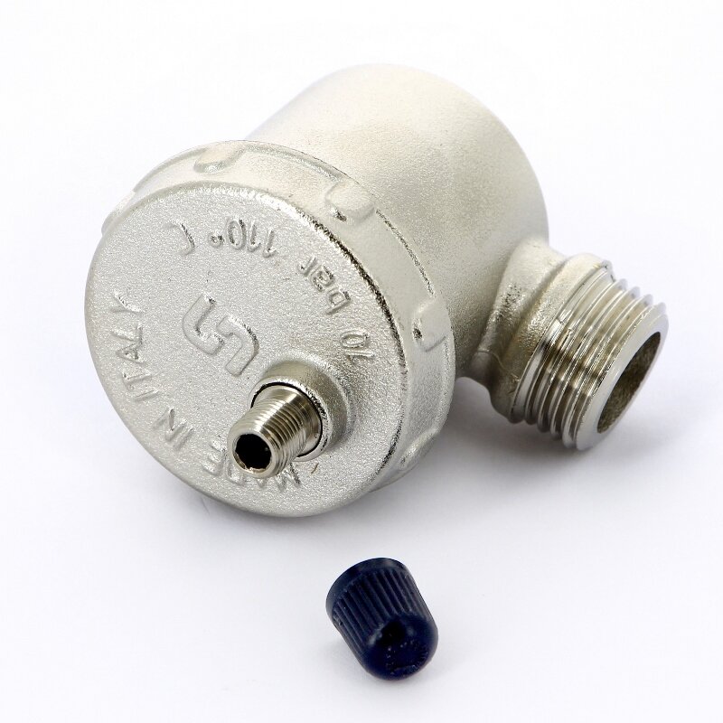 Воздухоотводчик автоматический, 1/2, Н, PN, бар-10, без автозапора, никелированный, с угловым подключением