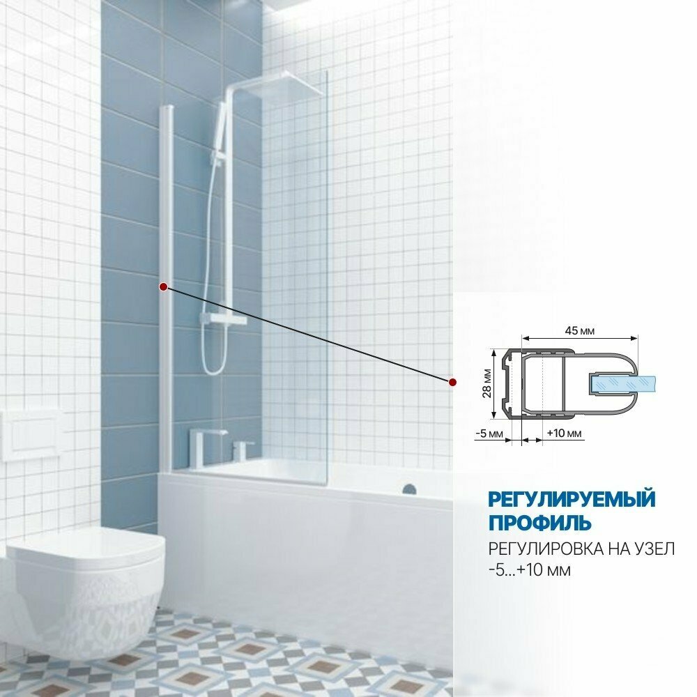 10 цен на Шторка на ванну GWMPKB020P601N 54x153 см, цвет фурнитуры белый матовый, цвет стекла бесцветный, стекло закаленное 6 мм