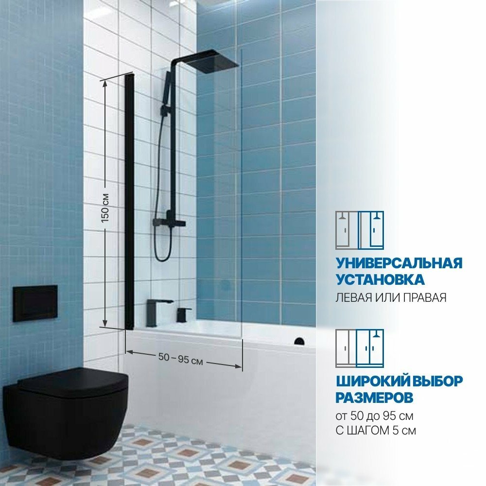 10 цен на Шторка на ванну GWMPKB020P601 50x150 см, цвет фурнитуры черный матовый, цвет стекла бесцветный, стекло закаленное 6 мм, открывание двери левое / правое