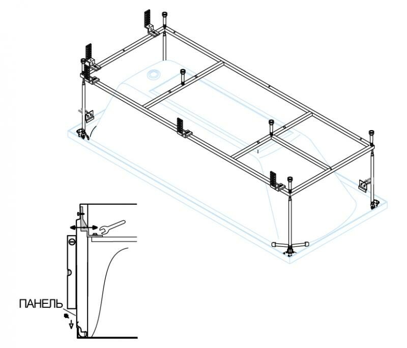 Ножки для ванн (поддона) универсальные, оцинкованные, комплект, регулировка по высоте 8 см, нагрузка до 300 кг. (+ монтажный комплект)