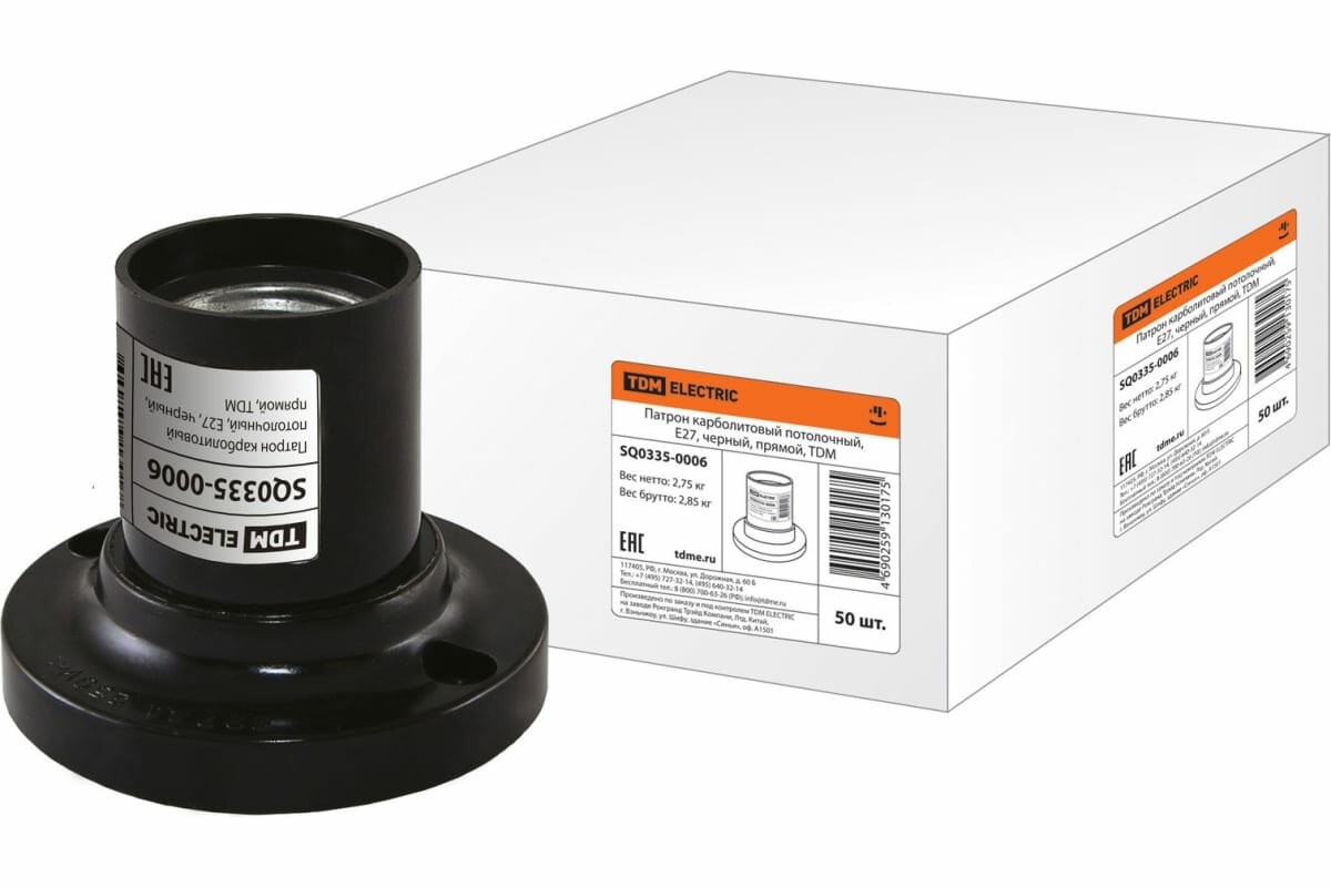 Отзывы на TDM патрон E27 карболит, потолочный, прямой, черный 4А (50!) SQ0335-0006
