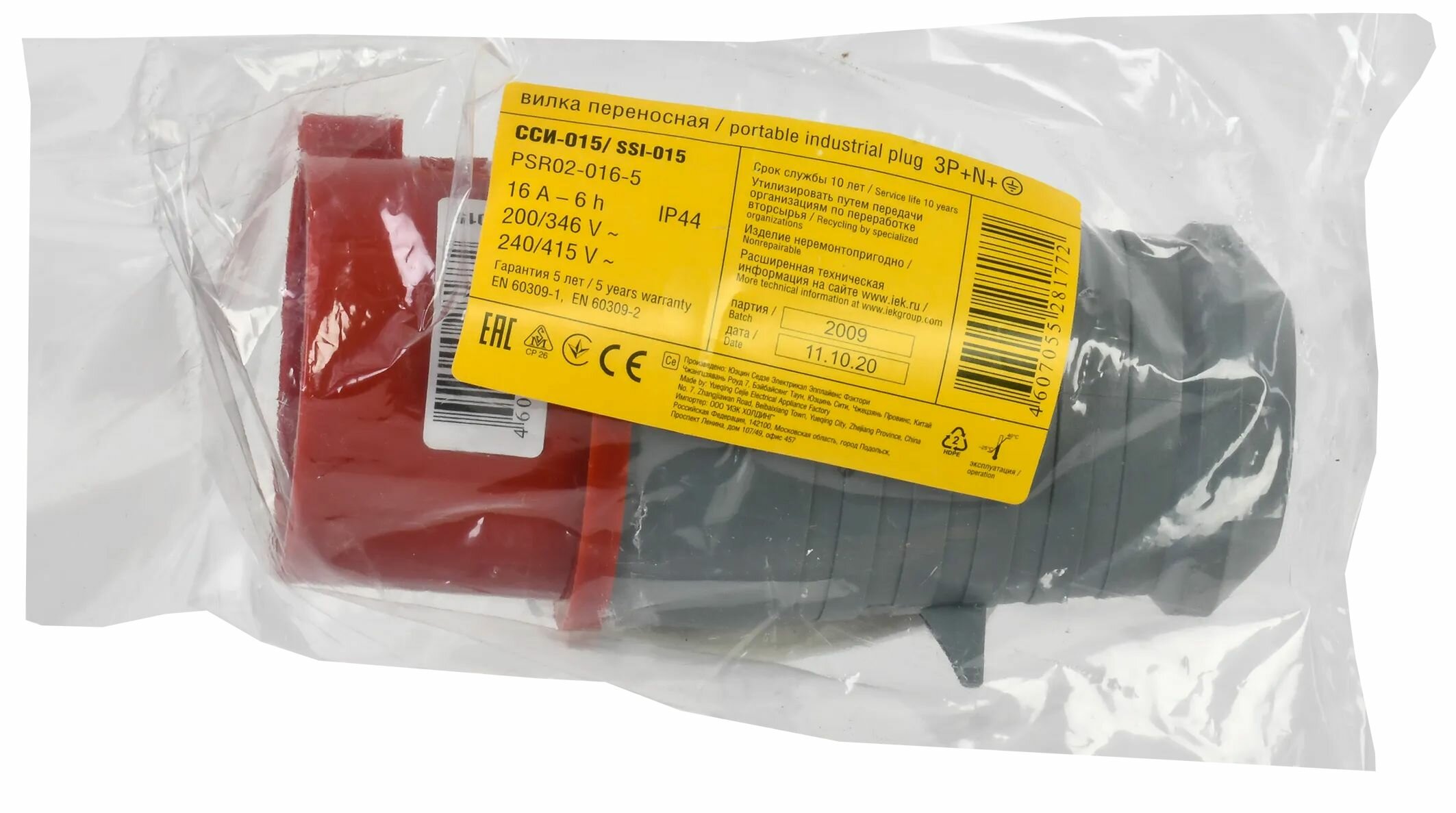 Вилка силовая переносная IEK 3Р+РЕ+N 16А 380В пластиковая IP44 информация: