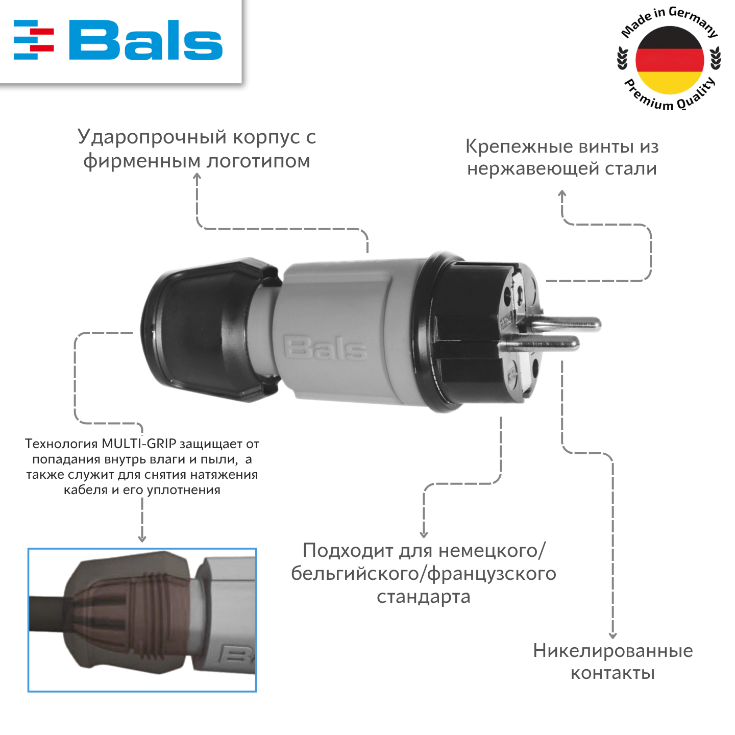 10 цен на Вилка Bals кабельная SCHUKO 16A, 3P(2P+E), 250V, IP44, серый