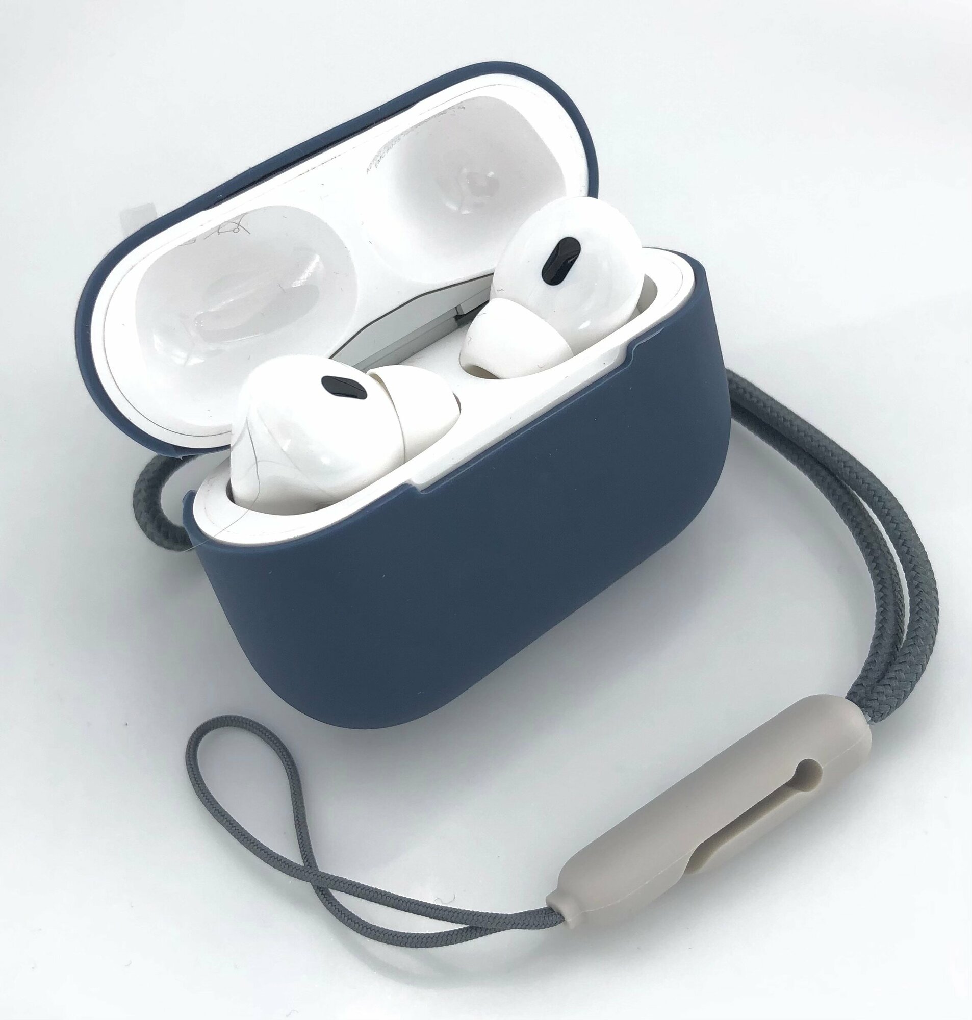 Отзывы на Силиконовый чехол для AirPods Pro 2 с ремешком ультратонкий midnight blue