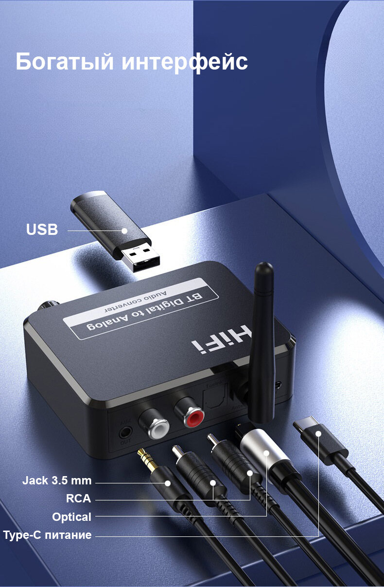 Адаптер Bluetooth Ресивер (приёмник аудио) AUX, RCA, USB + DAC Аудио конвертер (Toslink - AUX, RCA ) Bluetooth 5.1 B35 информация: