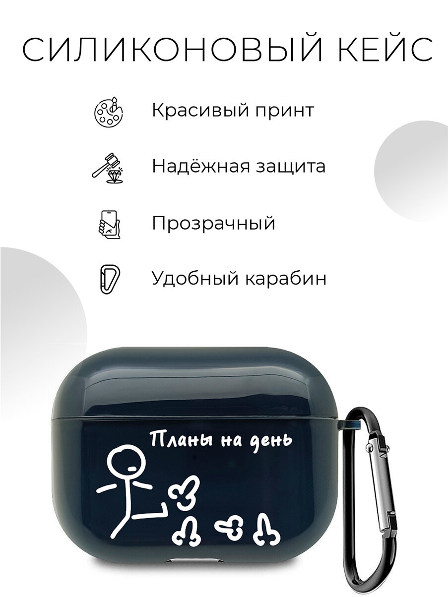 Отзывы на Силиконовый прозрачный чехол для наушников Apple AirPods Pro с 3D принтом "Plans W" черный