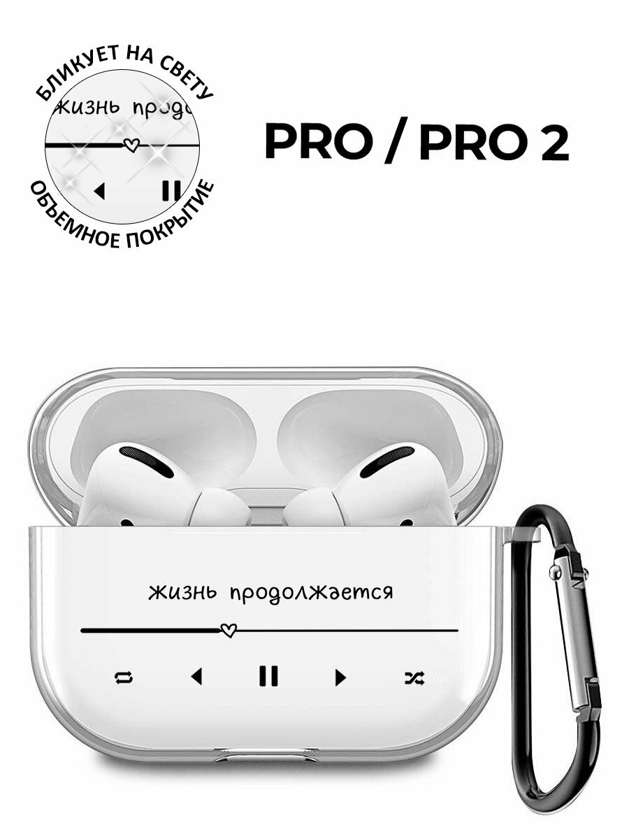 Силиконовый прозрачный чехол для наушников Apple Airpods Pro с 3D принтом "Life Goes On" информация: