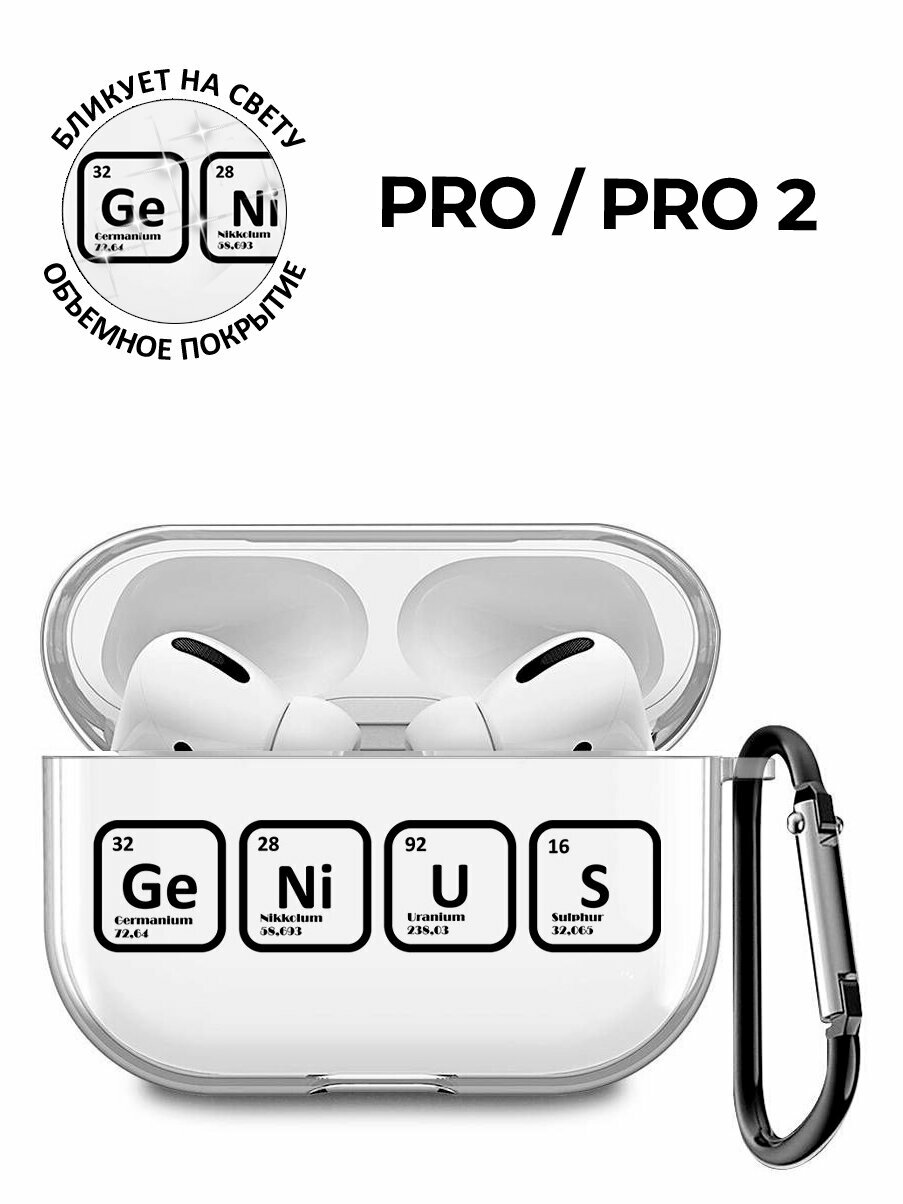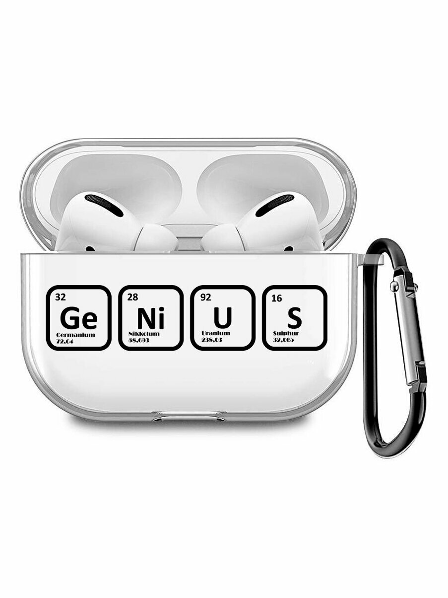 Силиконовый прозрачный чехол для наушников Apple AirPods Pro с 3D принтом "Genius" информация: