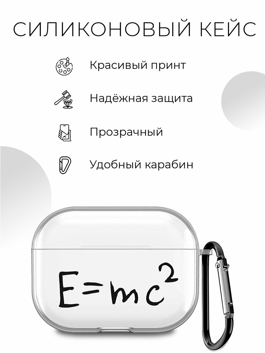 10 цен на Силиконовый прозрачный чехол для наушников Apple AirPods Pro / АирПодс Про с 3D принтом "E mc2"
