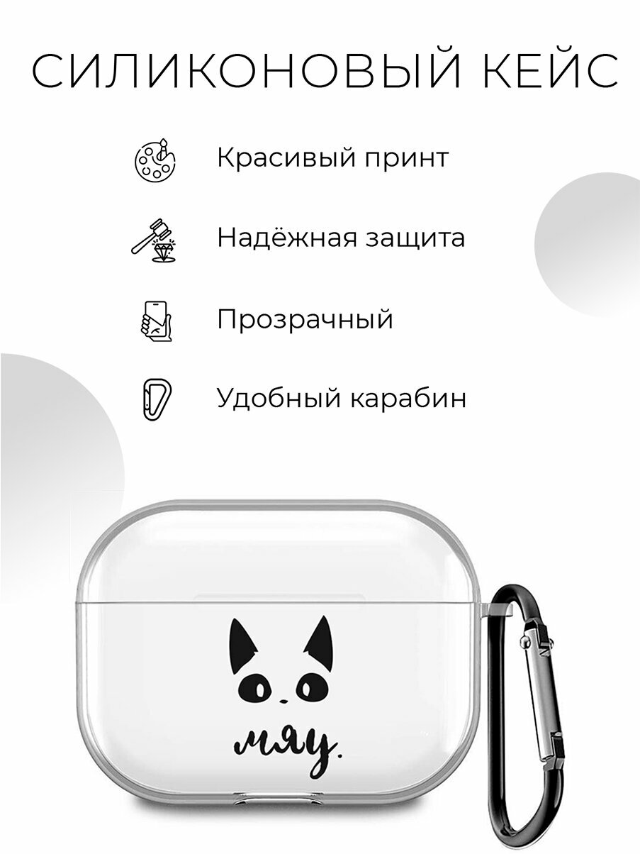 10 цен на Силиконовый прозрачный чехол для наушников Apple AirPods Pro / АирПодс Про с 3D принтом "Meow"