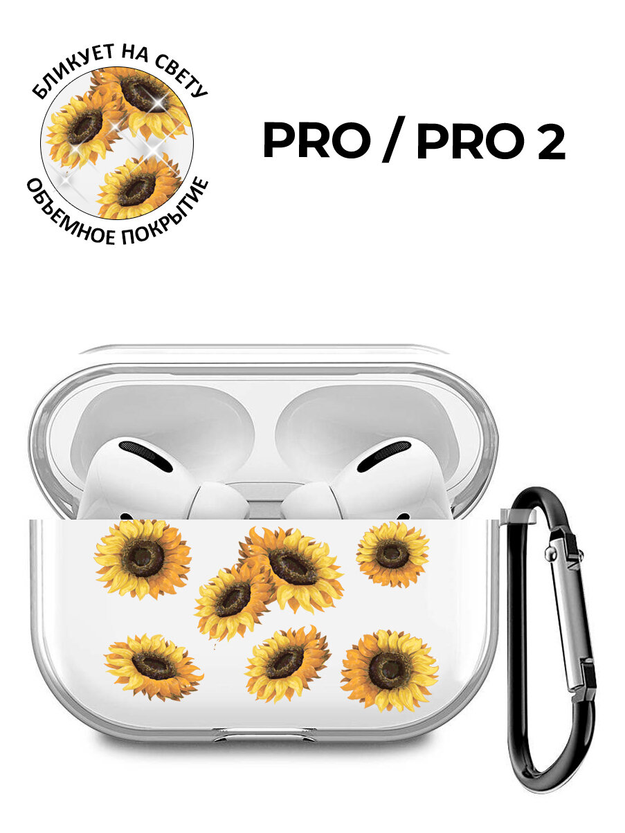 10 цен на Силиконовый прозрачный чехол для наушников Apple AirPods Pro / АирПодс Про с 3D принтом "Sunflowers"
