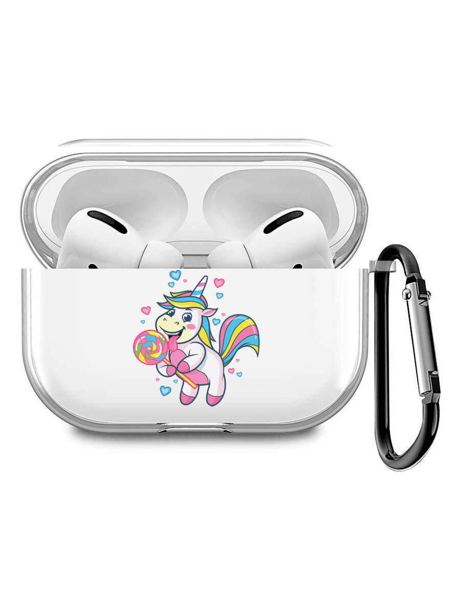 10 цен на Силиконовый прозрачный чехол для наушников Apple AirPods Pro / АирПодс Про с 3D принтом "Unicorn and candy"