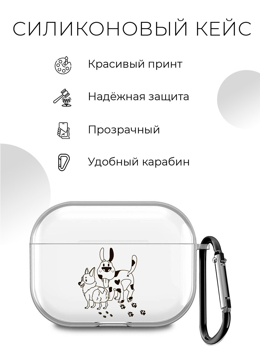 Силиконовый прозрачный чехол для наушников Apple AirPods Pro / АирПодс Про с 3D принтом "Funny doggies" информация: