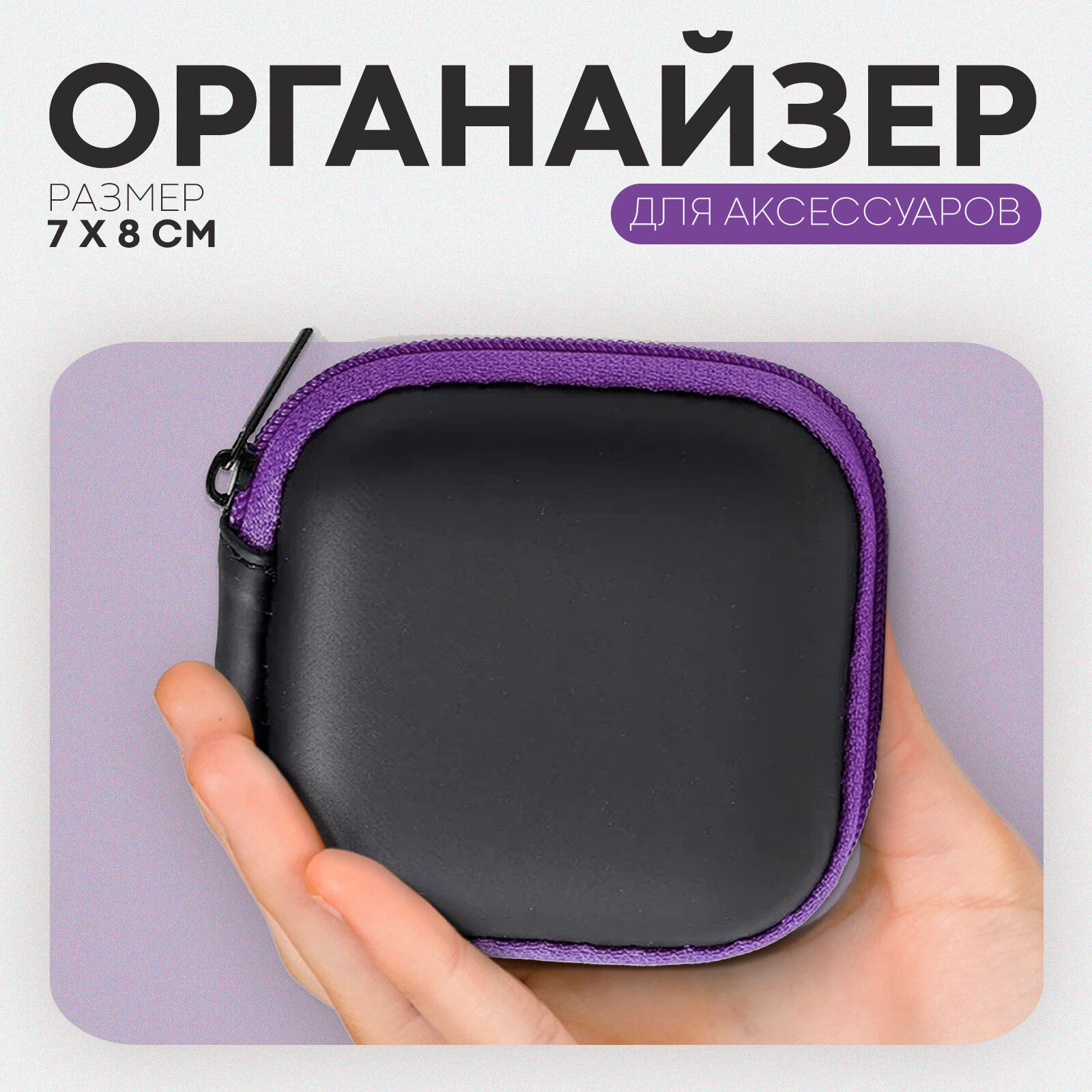 Чехол-кейс на молнии для проводных и беспроводных наушников, бренд Картофан, черно-фиолетовый информация: