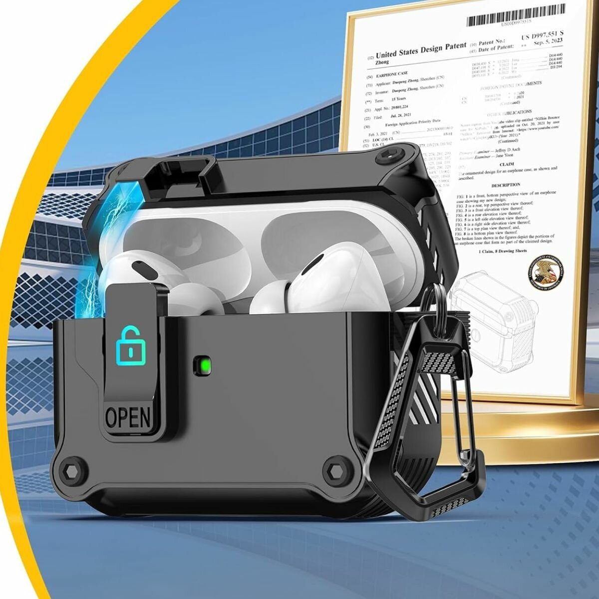 Чехол для наушников Airpods Pro 2 противоударный черный/ с карабином/с автооткрыванием крышки 900 ₽