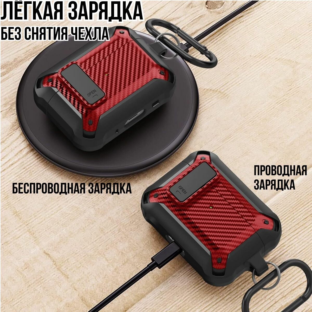 Чехол для наушников Airpods Pro и Airpods Pro 2 противоударный красный / Чехол для наушников аирподс про и аирподс про 2 усиленный карбон информация: