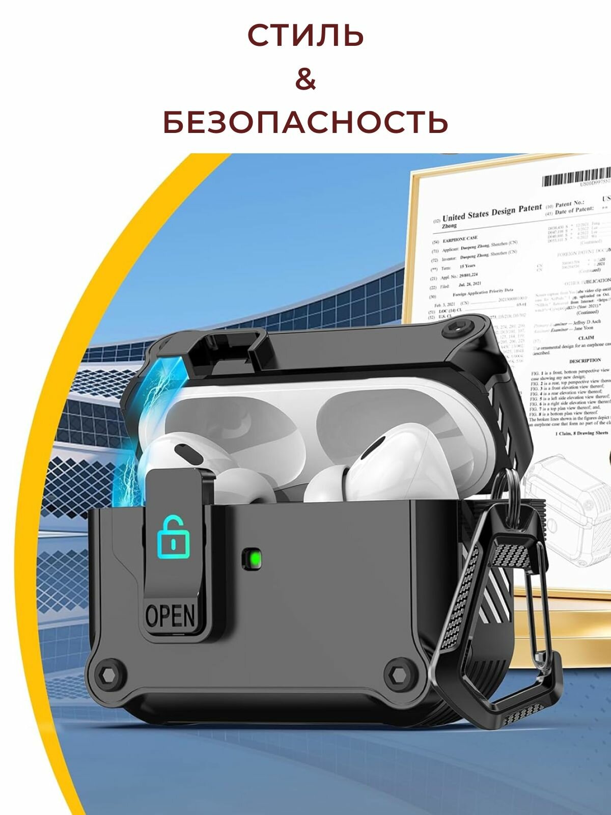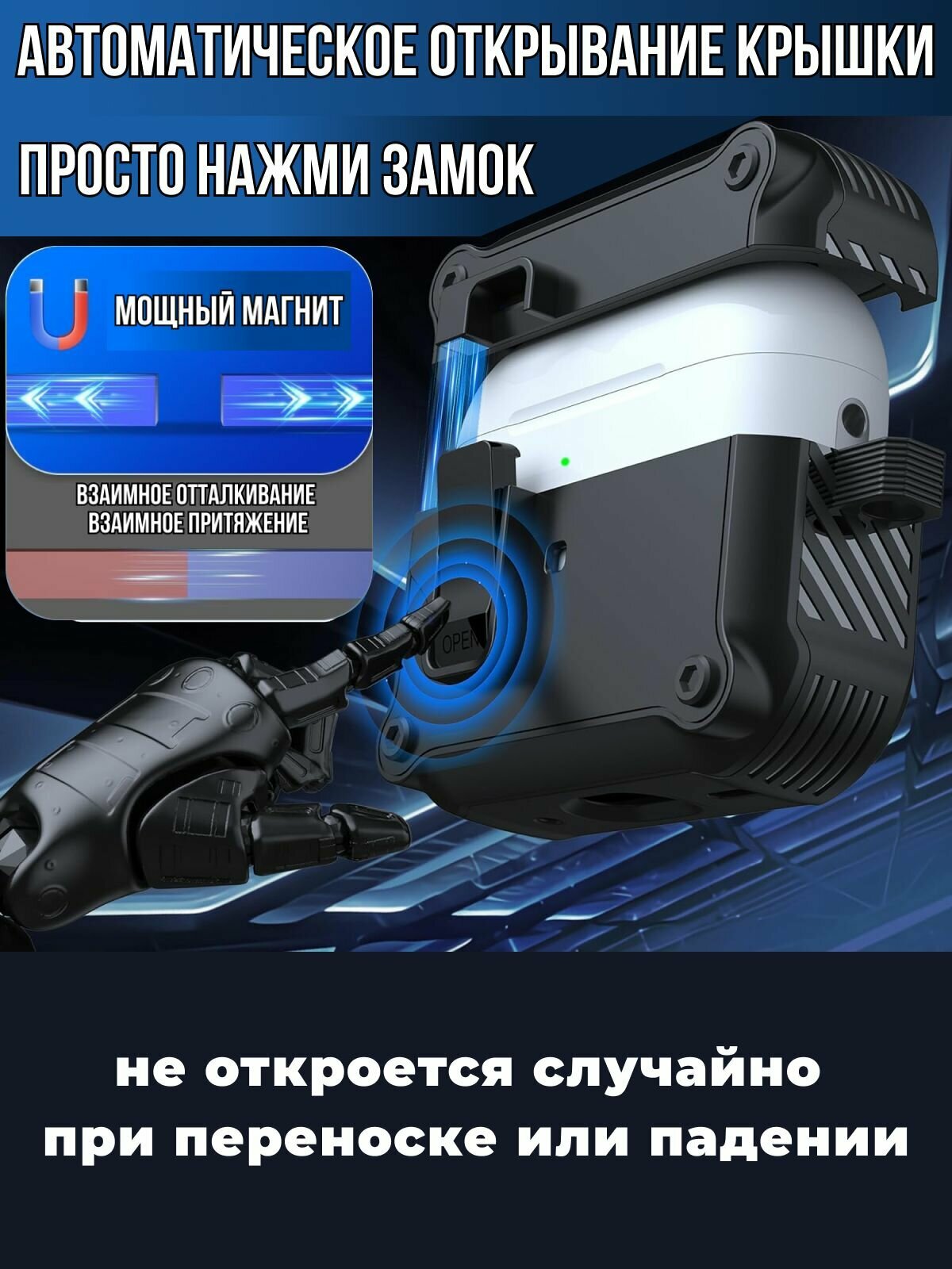Чехол для наушников Airpods Pro 2 противоударный черный/ с карабином/с автооткрыванием крышки информация: