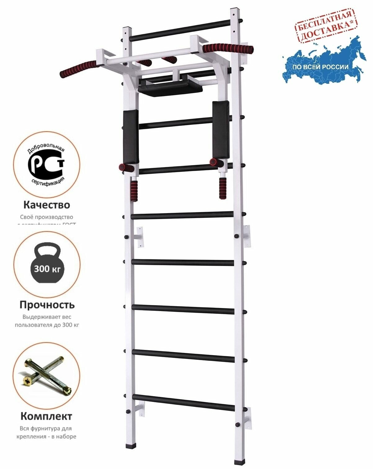 10 цен на Шведская стенка усиленная + Турник 3 в 1 Нагрузка до 250 кг! Цвет: Белый