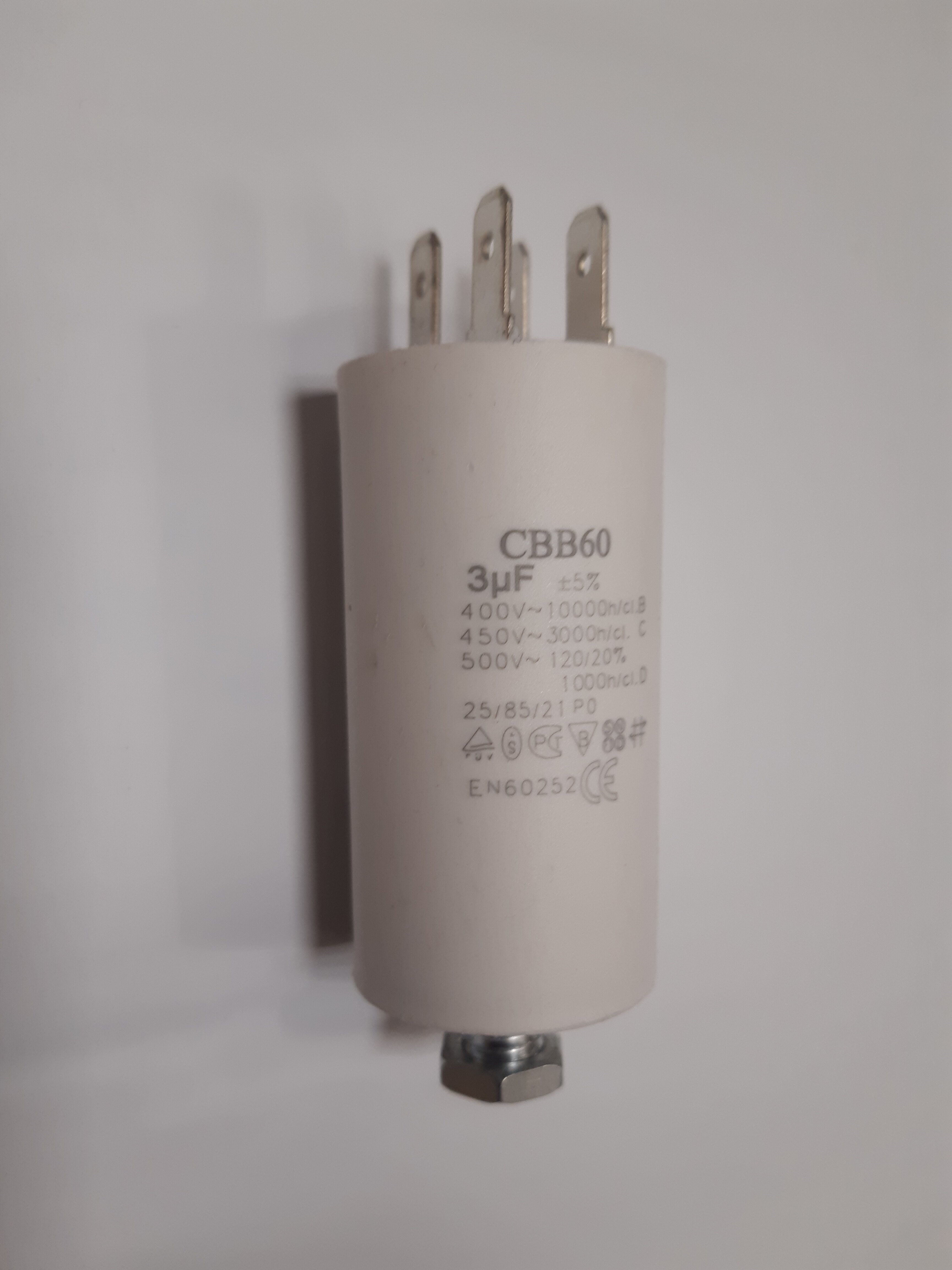 Конденсатор пусковой 3mF 450V CBB60 с креплением на корпусе информация: