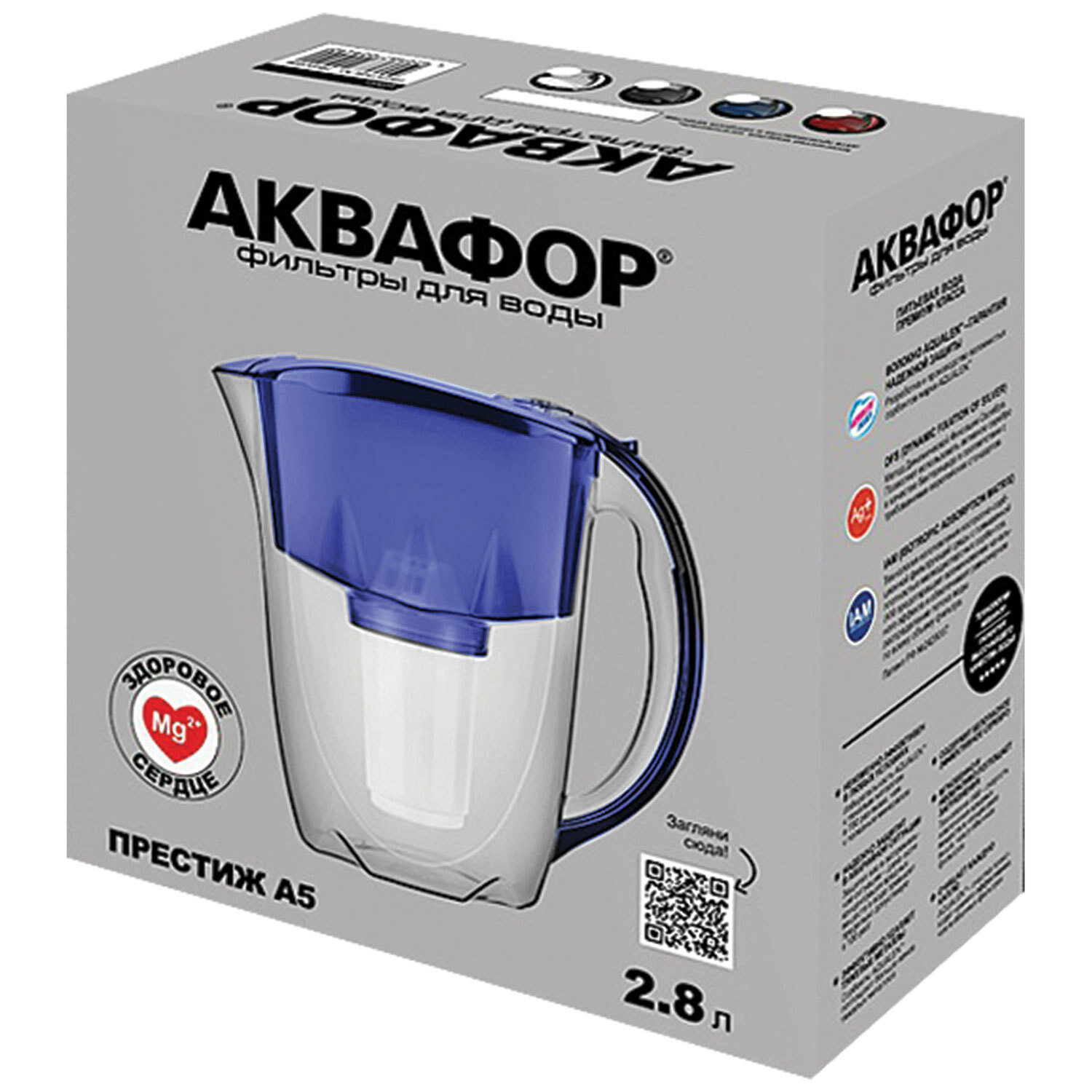 Кувшин-фильтр для очистки воды АКВАФОР "Престиж А5" модель Р80А5SM, 2,8 л, со сменной кассетой, синий, 211150 информация: