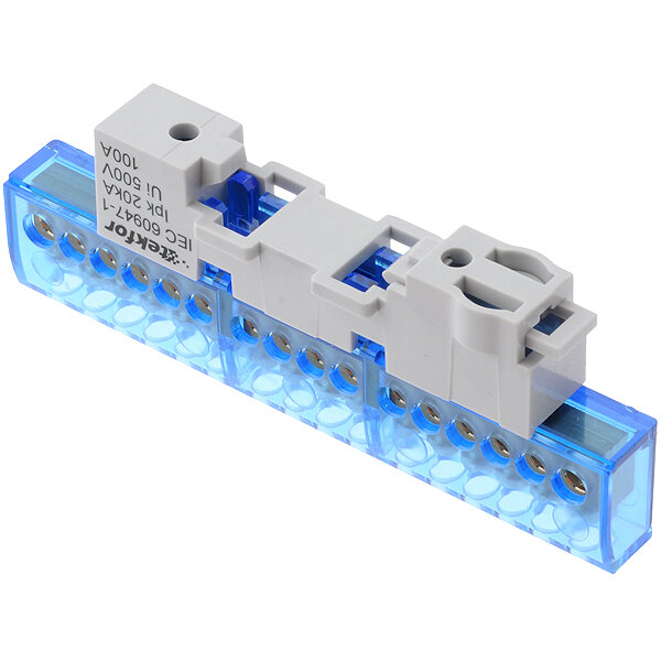Шина 06-07-003 ноль синий изолятор на 16 присоединений латунь 100А Текфор (2 шт. в комплекте) информация: