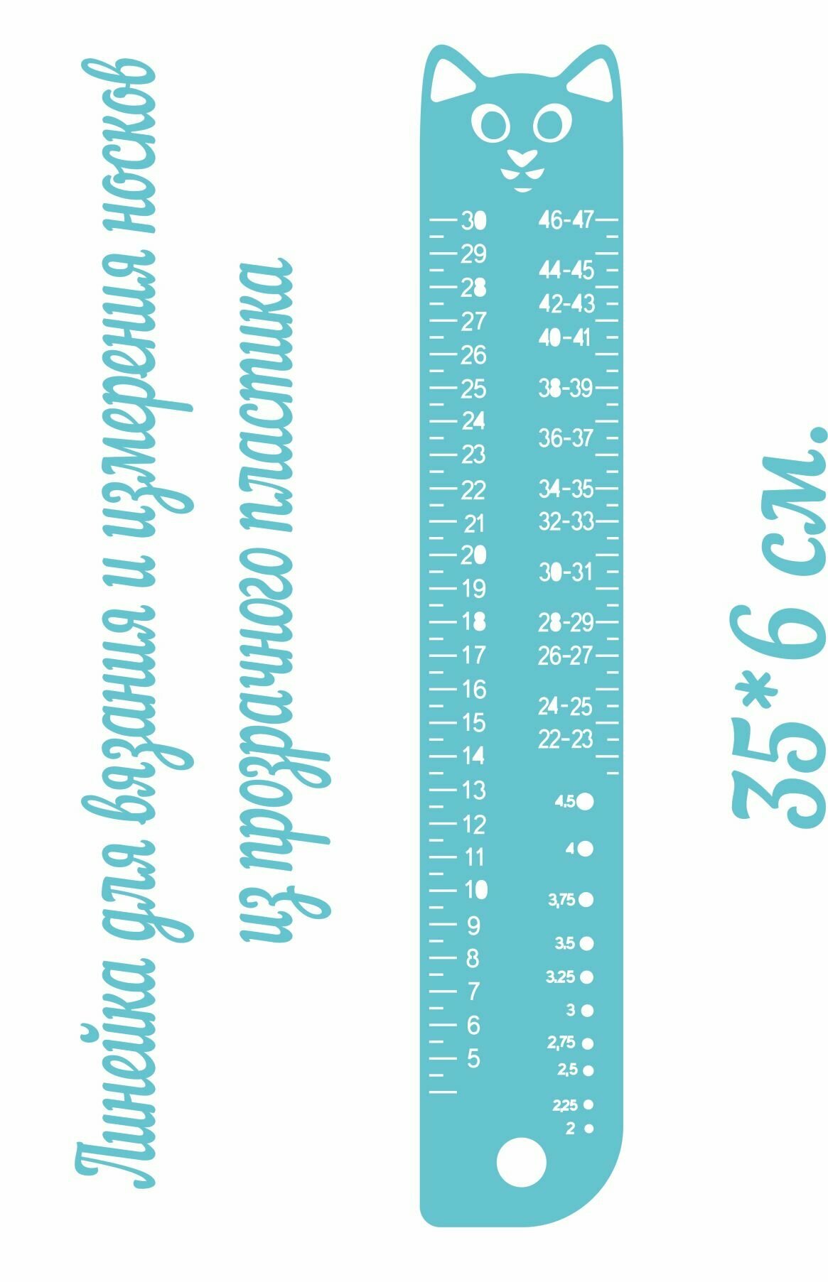 Линейка для вязания и измерения носков из прозрачного пластика информация: