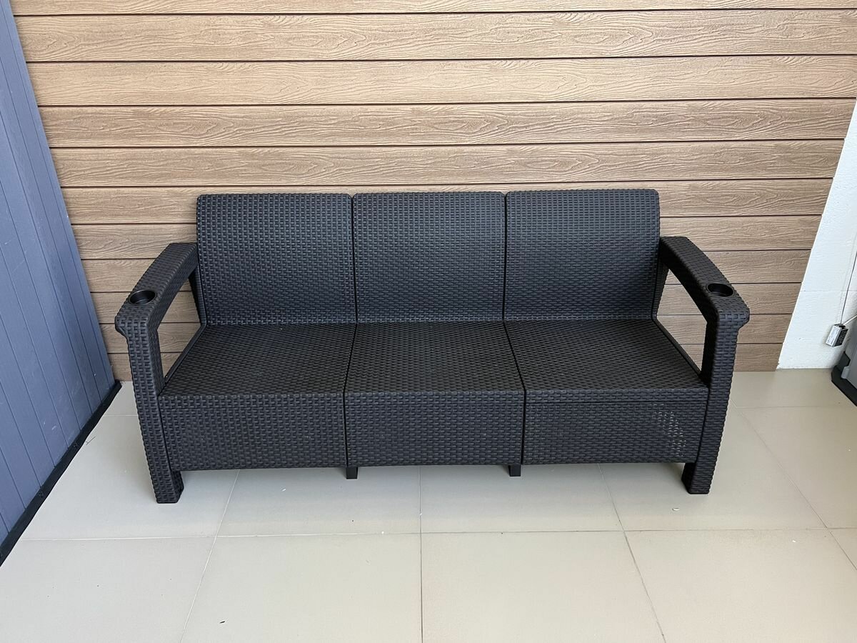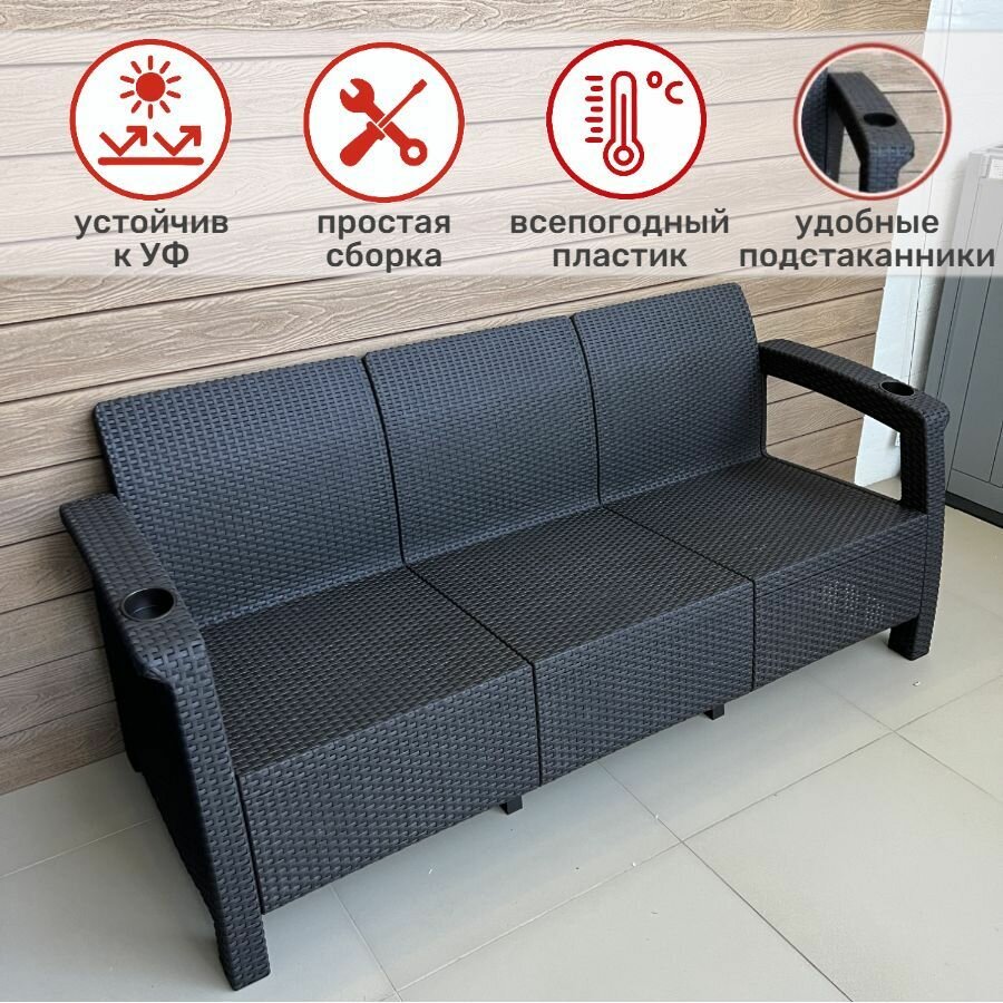 Диван садовый трехместный YALTA (Ялта Ротанг-плюс) + 3 коричневые подушки (искусственный ротанг (пластик)
