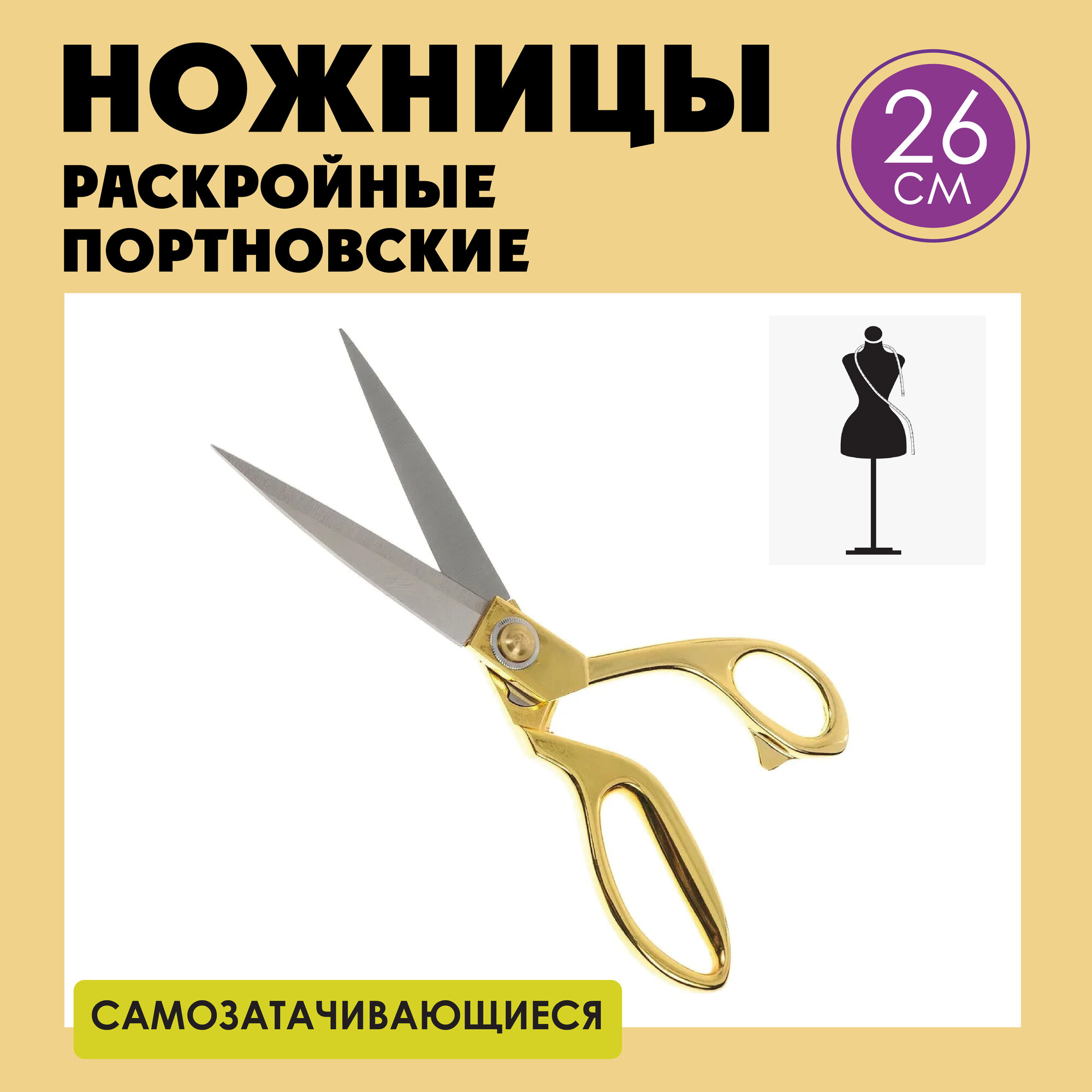 Ножницы портновские профессиональные раскройные для шитья, длина 26 см информация: