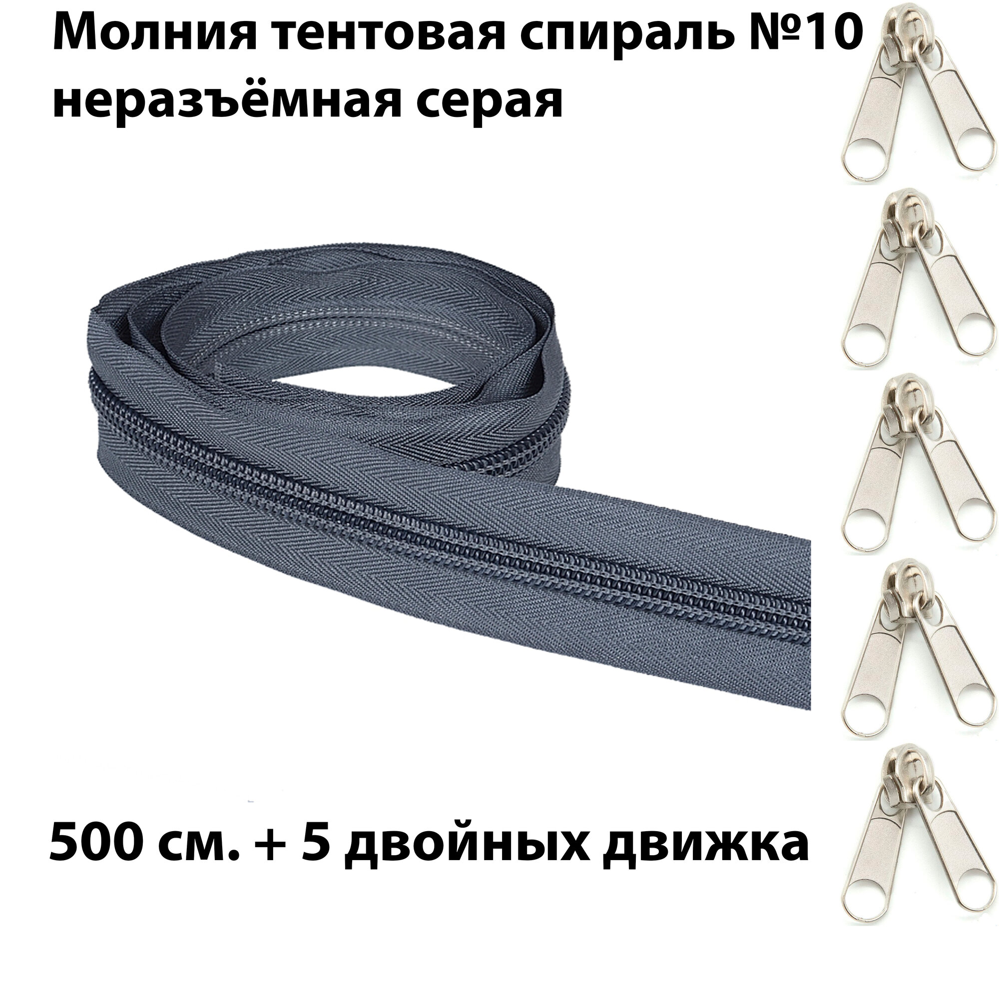 10 цен на Молния тентовая неразъемная серая №10 500 см., 5 бегунка в комплекте
