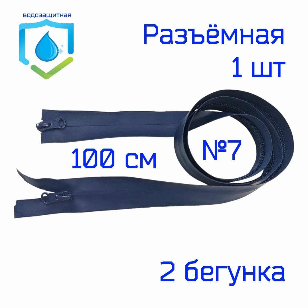 10 цен на Молния водонепроницаемая №7, спиральная, 2/100см, темно-синяя, разъёмная, 1шт, 2 бегунка