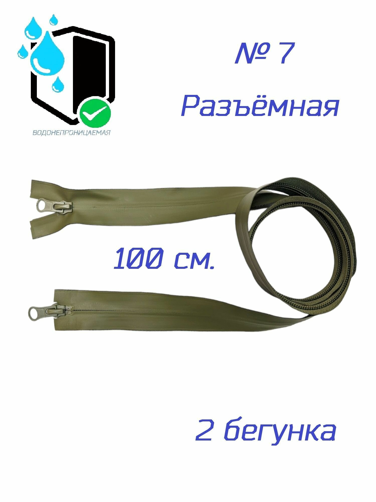 Молния водонепроницаемая №7, спиральная, 2/100см, хаки, разъёмная, 1шт, 2 бегунка информация: