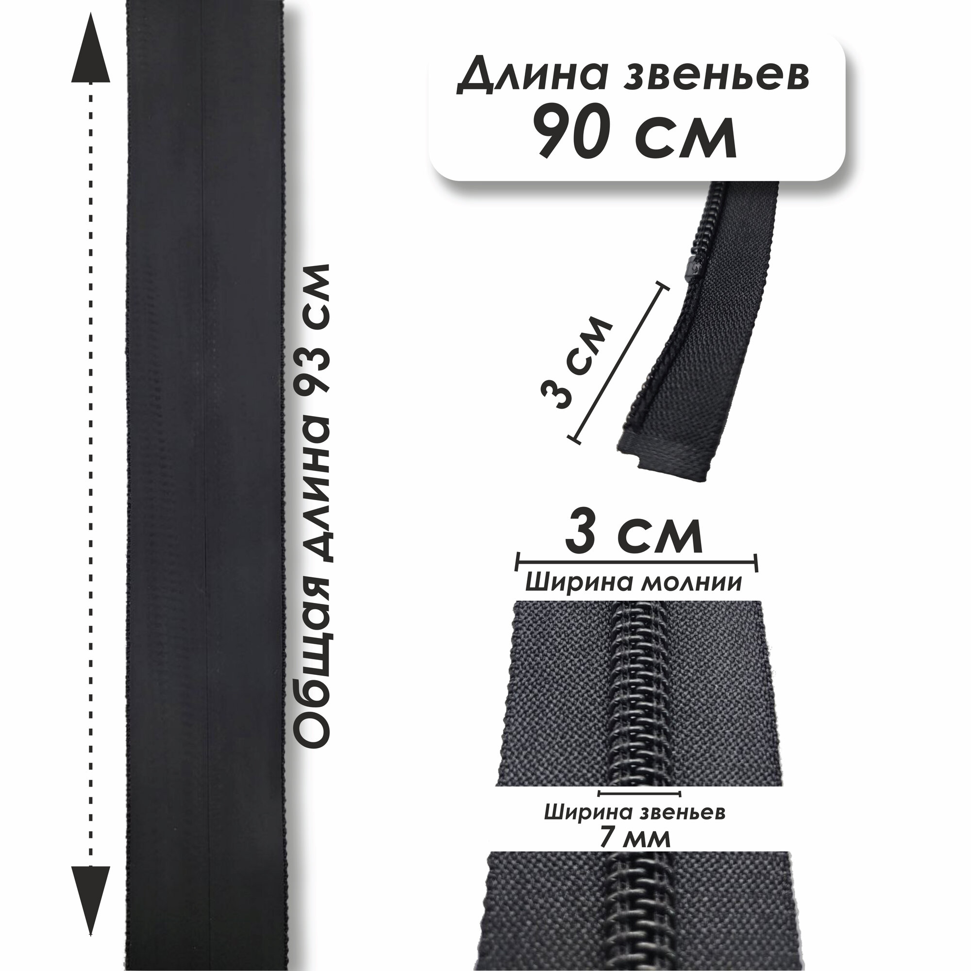 Застежка-молния влагозащитная водонепроницаемая Т7, 2 замка, 90 см, 1 шт. информация: