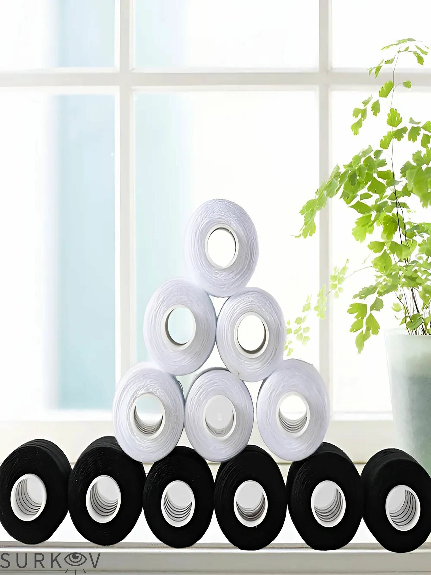 Нитки для шитья для швейных машин (6 белых и 6 черных) прочные разноцветные + иголки нитковдеватели и наперсток информация: