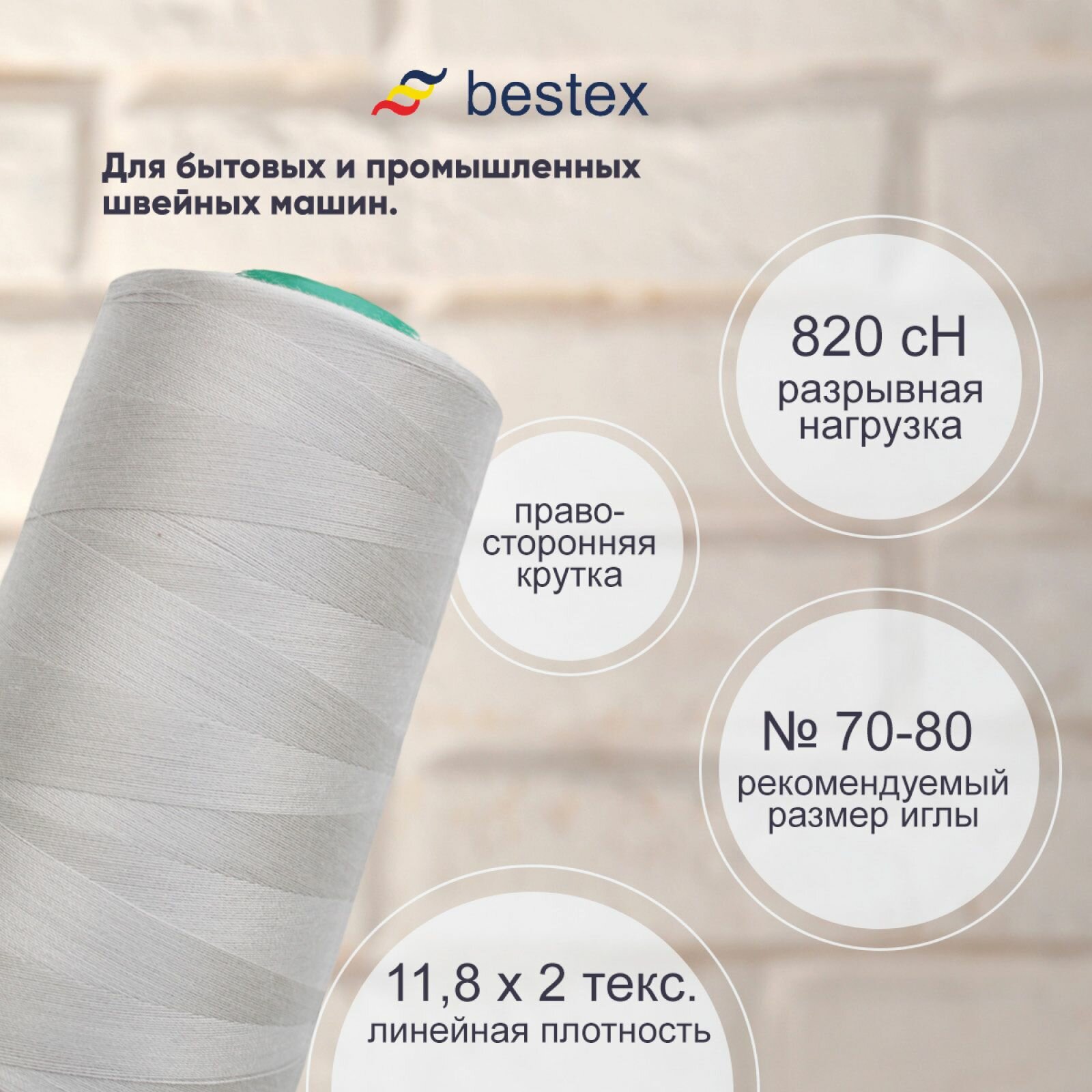 Нитки промышленные 50/2, для тонких тканей, 5000 ярдов, Bestex (152 бело-молочный) 272 ₽