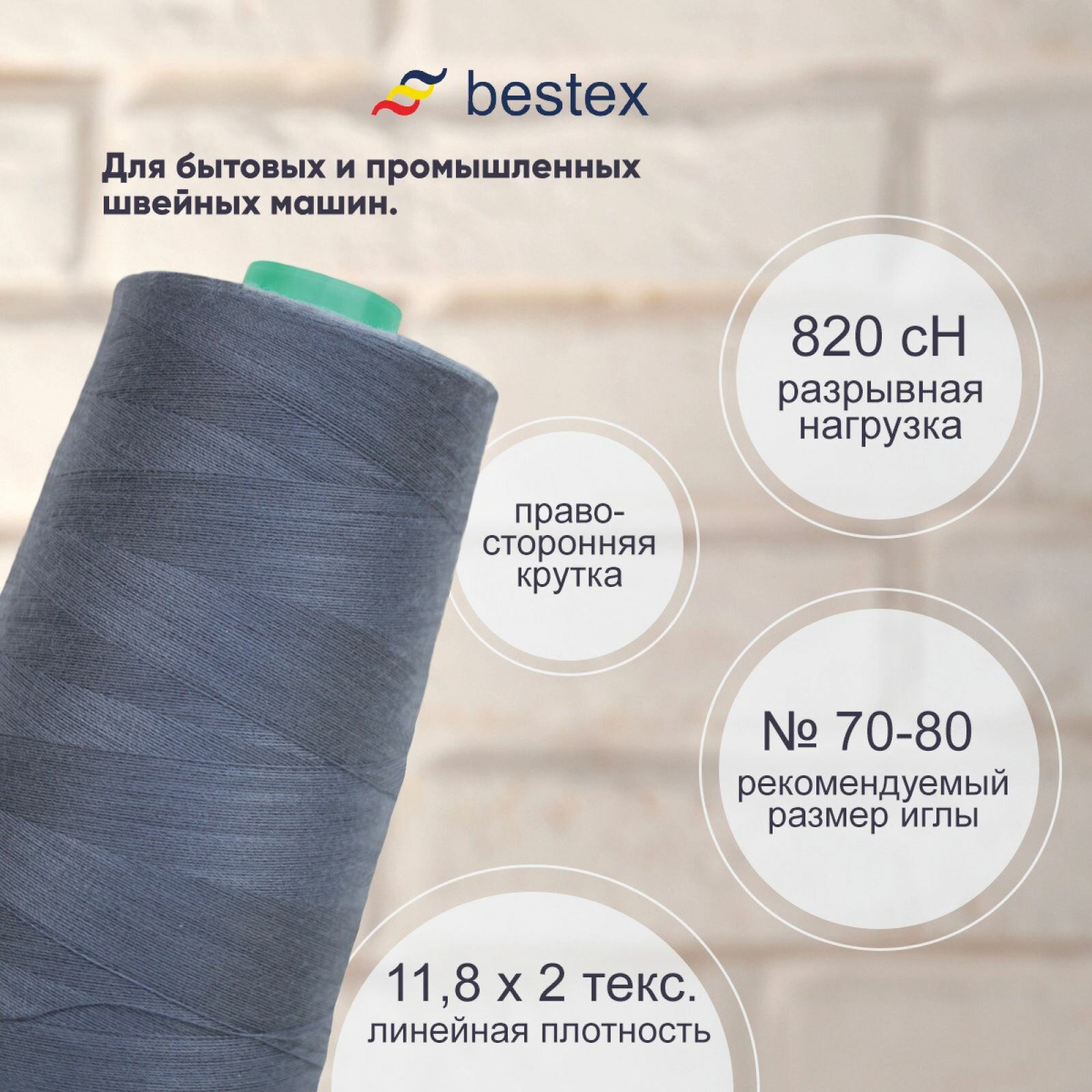 10 цен на Нитки промышленные 50/2, для тонких тканей, 5000 ярдов, Bestex (193 серо-синий)