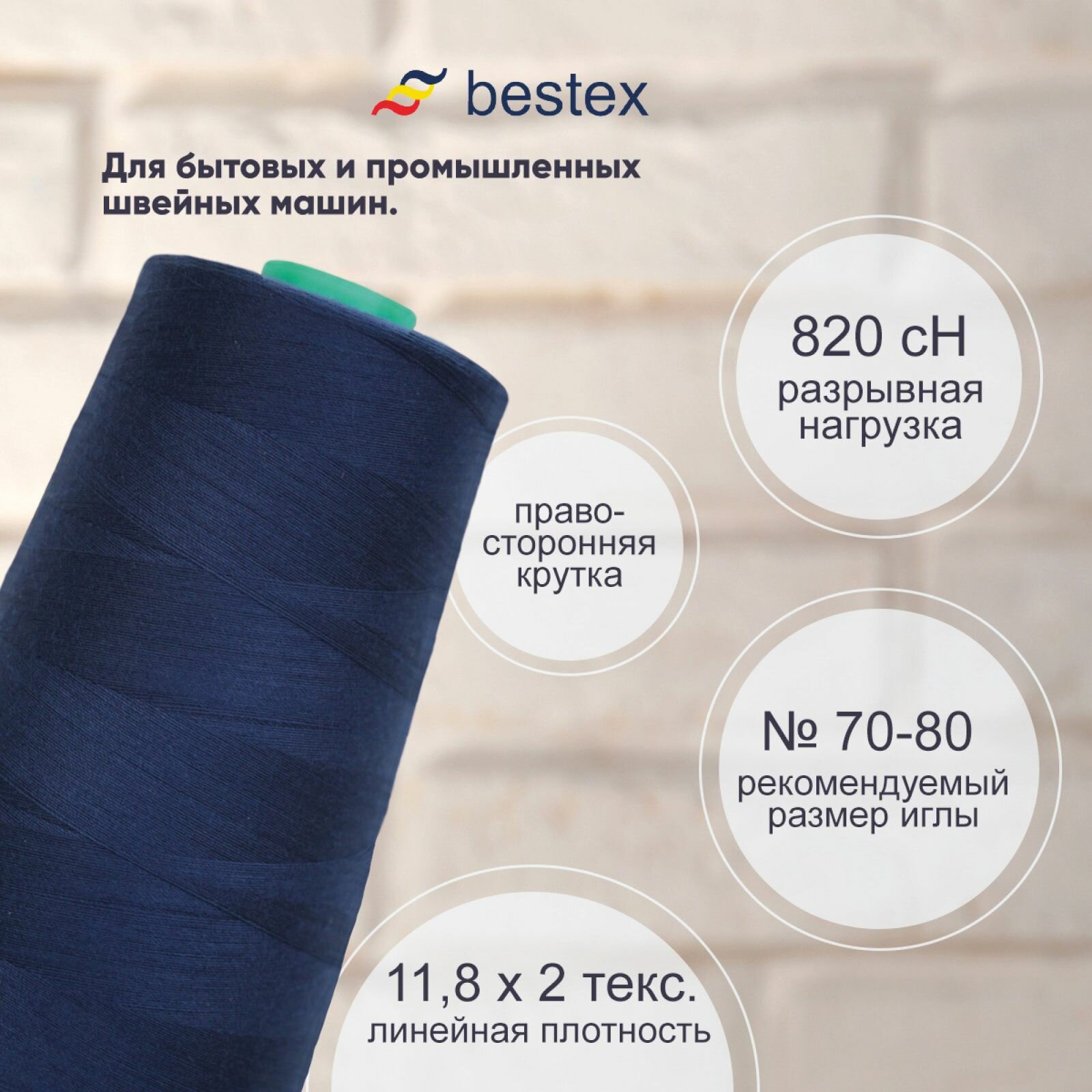 Нитки промышленные 50/2, для тонких тканей, 5000 ярдов, Bestex (097 темный джинсовый) информация: