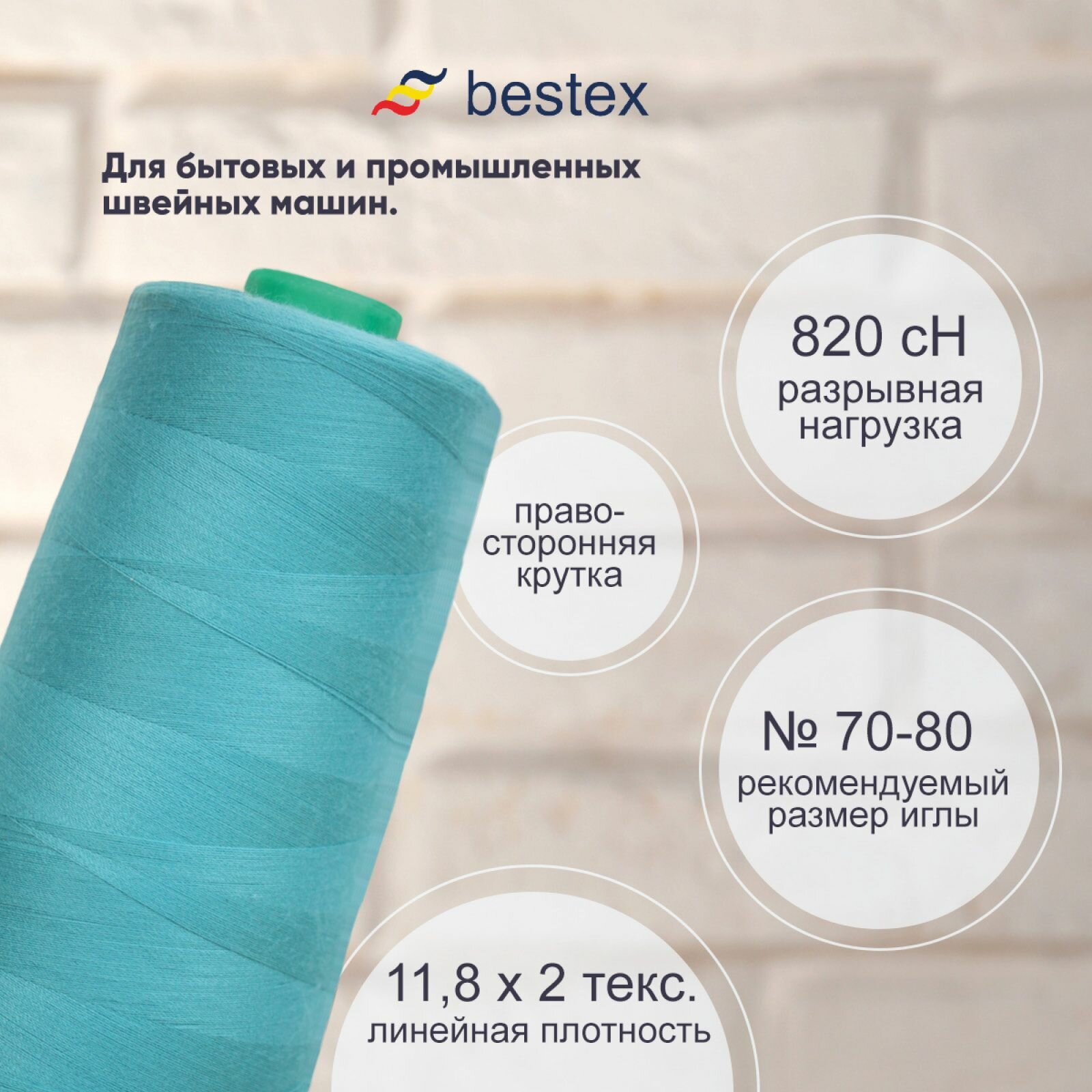 10 цен на Нитки промышленные 50/2, для тонких тканей, 5000 ярдов, Bestex (364 морская волна)
