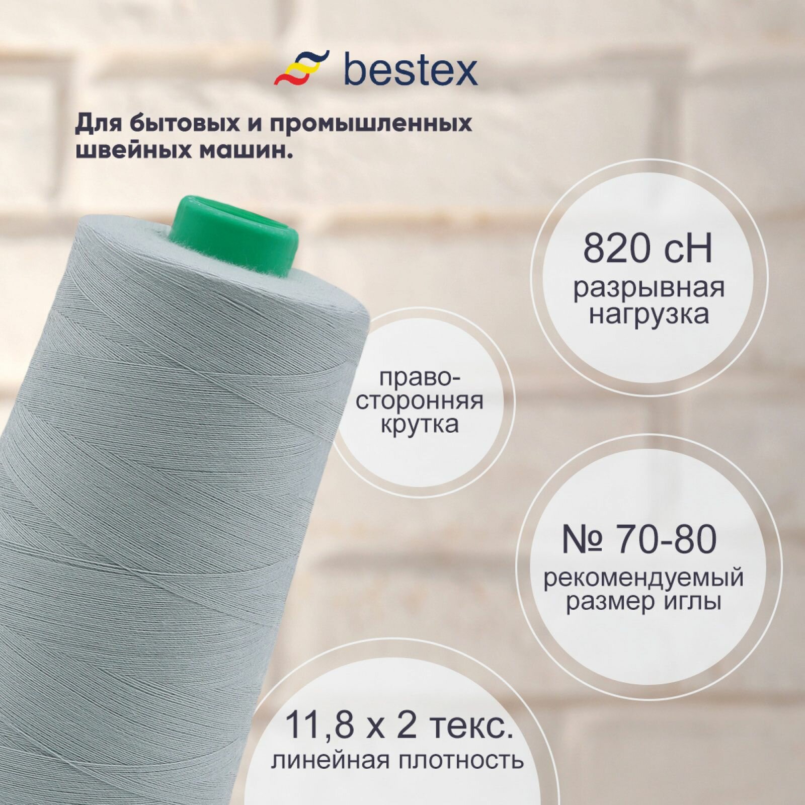Нитки промышленные 50/2, для тонких тканей, 5000 ярдов, Bestex (190 голубовато-серый) 254 ₽