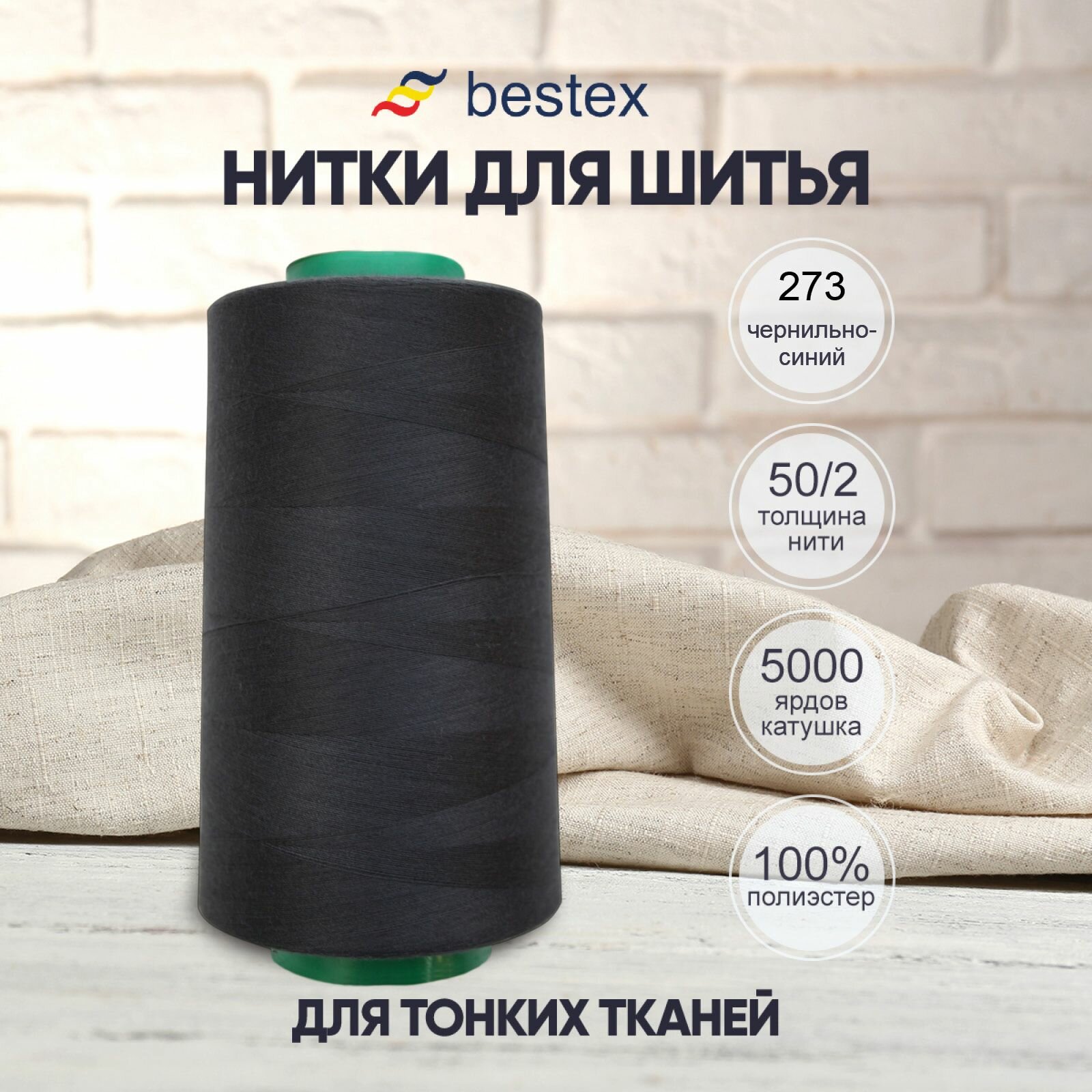Нитки промышленные 50/2, для тонких тканей, 5000 ярдов, Bestex (194 темно-чернильный) 254 ₽