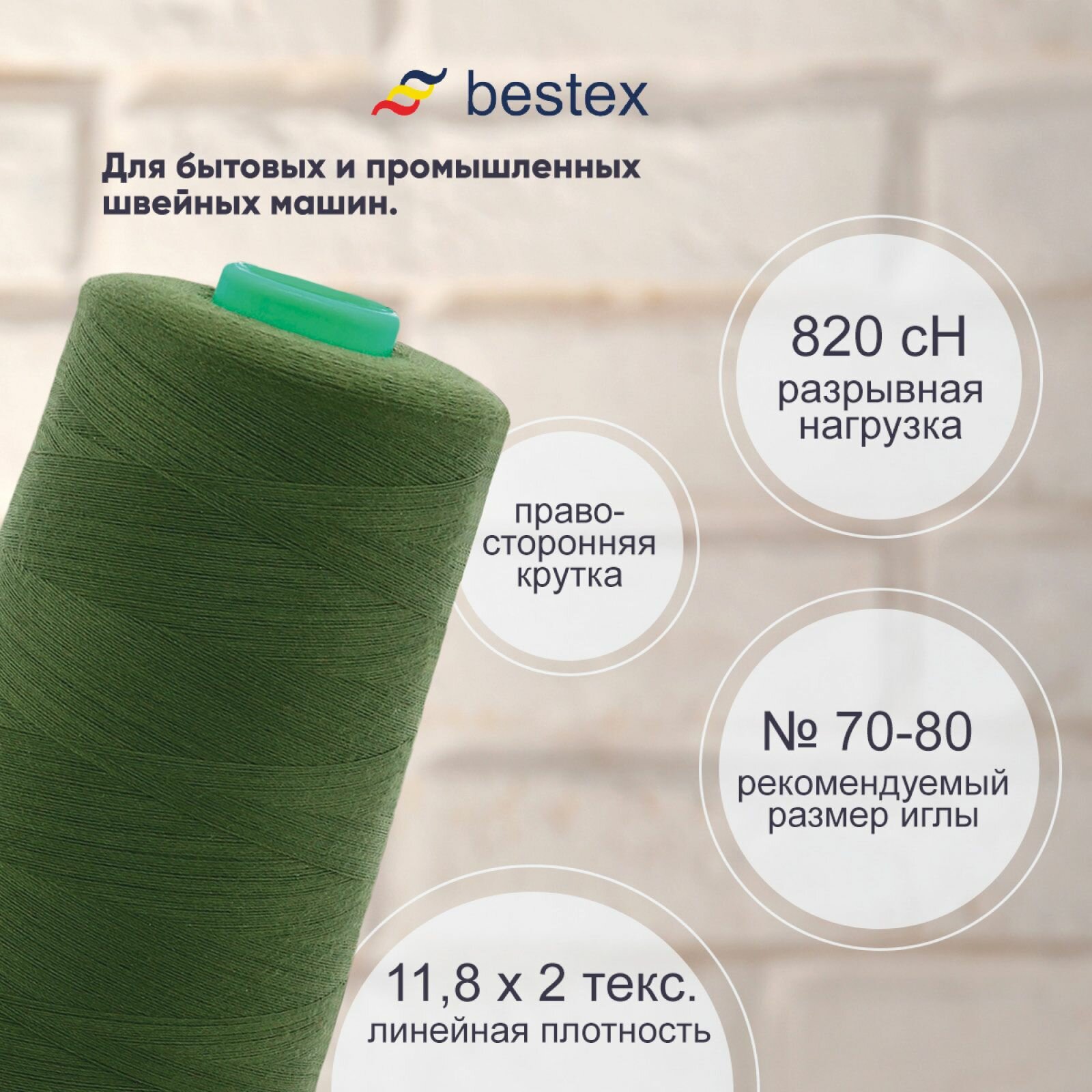 Нитки промышленные 50/2, для тонких тканей, 5000 ярдов, Bestex (151 темно-зеленый хаки) информация: