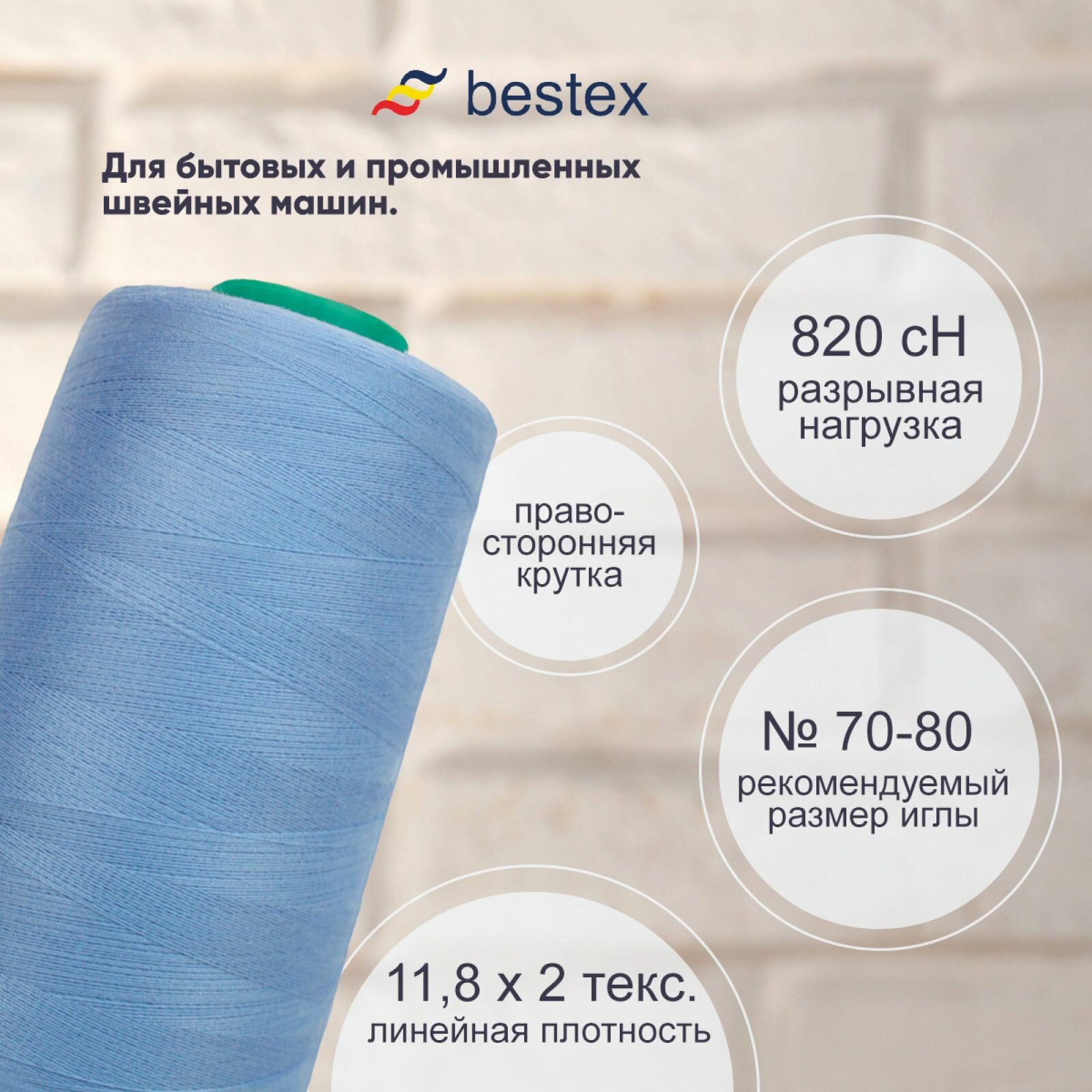 Нитки промышленные 50/2, для тонких тканей, 5000 ярдов, Bestex (354 нежно-голубой лед) 272 ₽