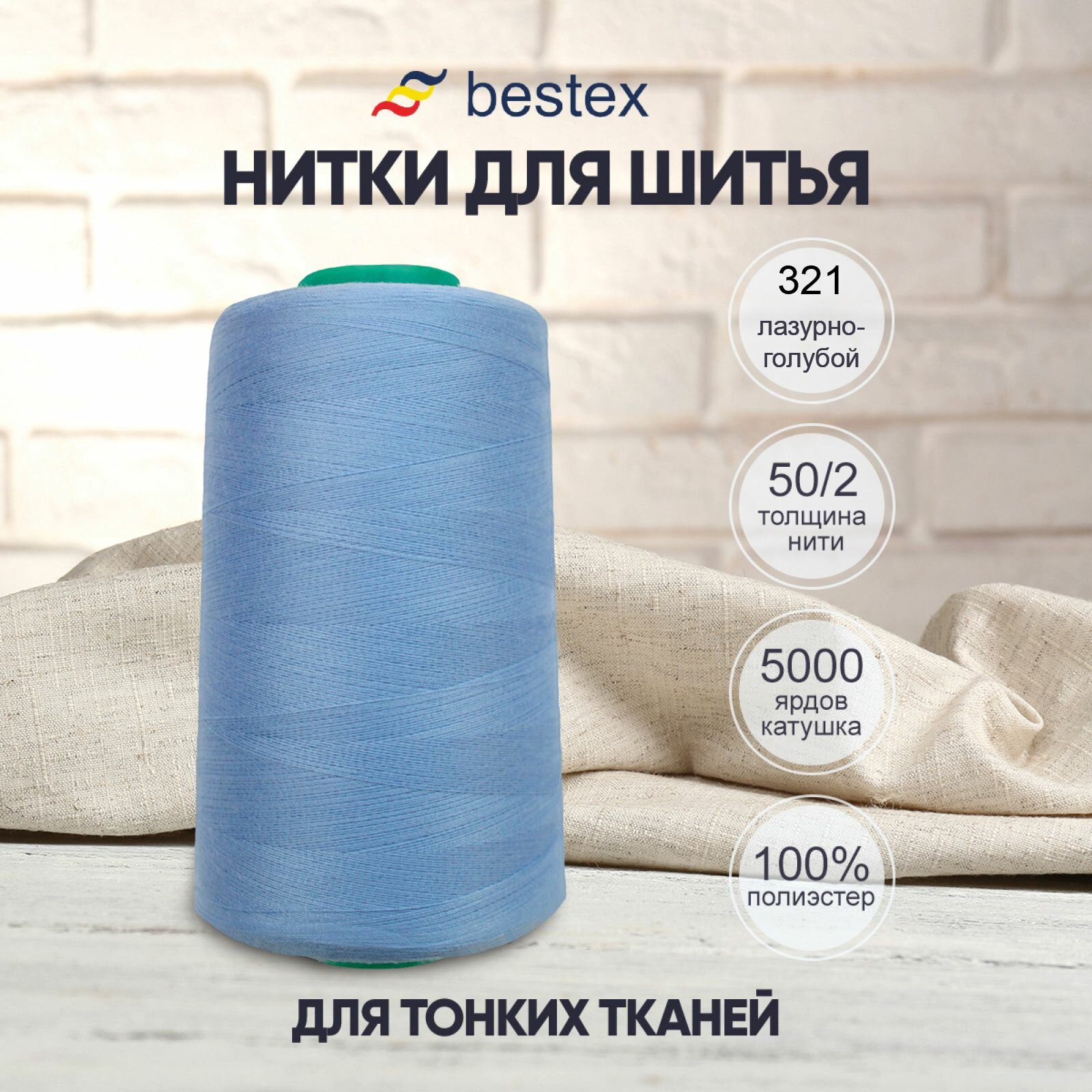 Нитки промышленные 50/2, для тонких тканей, 5000 ярдов, Bestex (320 небесно-голубой) 272 ₽