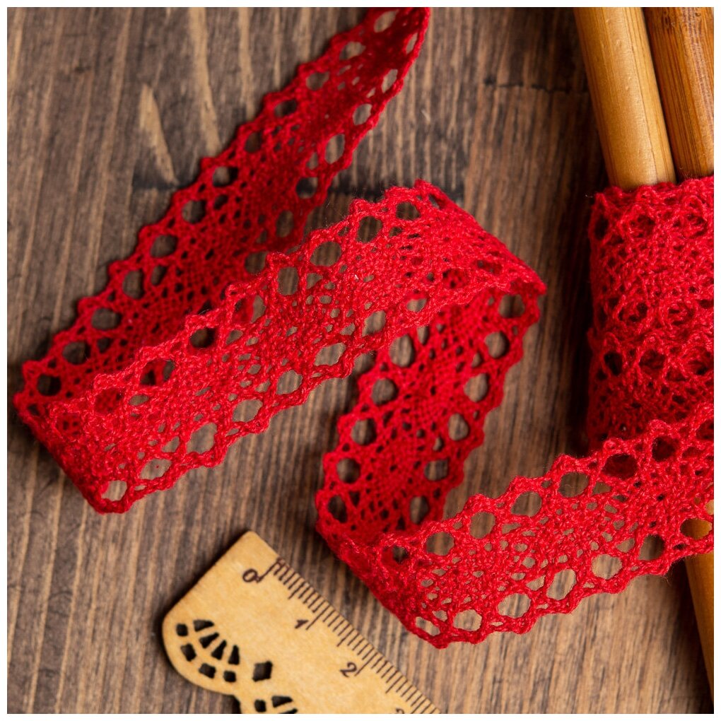 10 цен на Тесьма вязаная KRUZHEVO 20мм TBY-6307-1 кружево хлопок цв.31 красный уп.10м