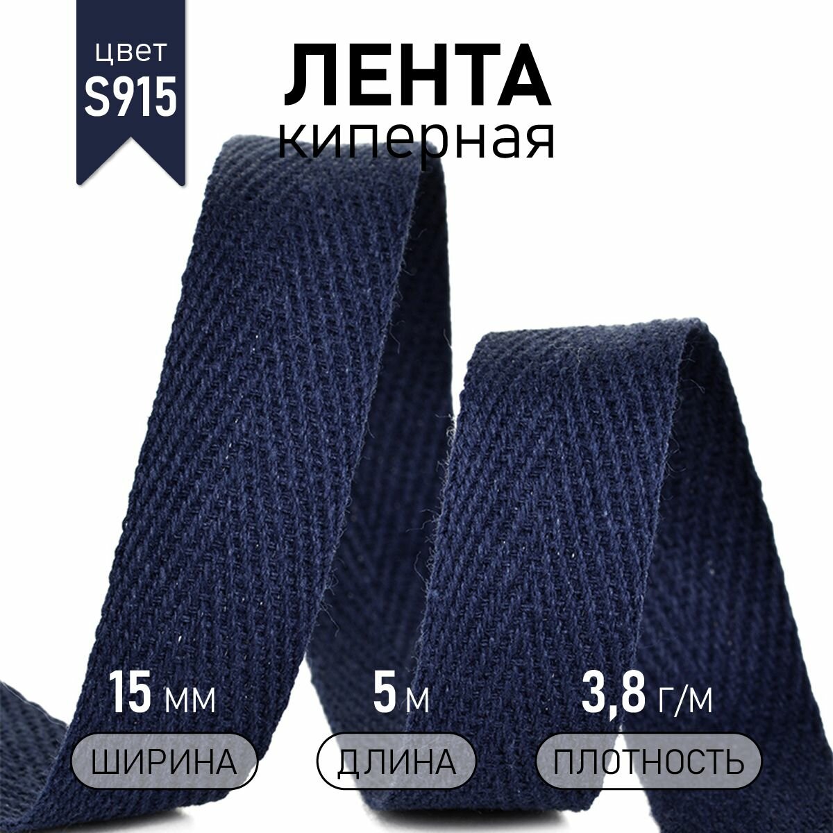 Тесьма киперная 15 мм хлопок 3,8г/м арт.TBY.CT15058 цв.S058 т.синий уп.5м 200 ₽