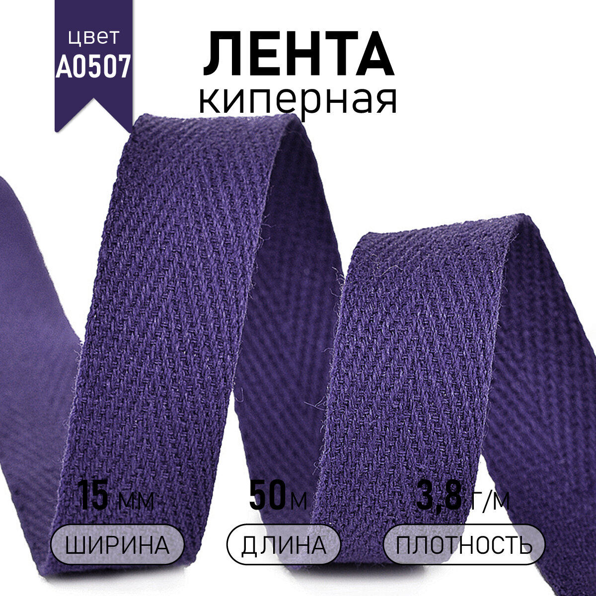 Тесьма киперная 15 мм хлопок 3,8г/м арт.TBY.CT150507 цв.A0507 фиолетовый неон уп.50м информация: