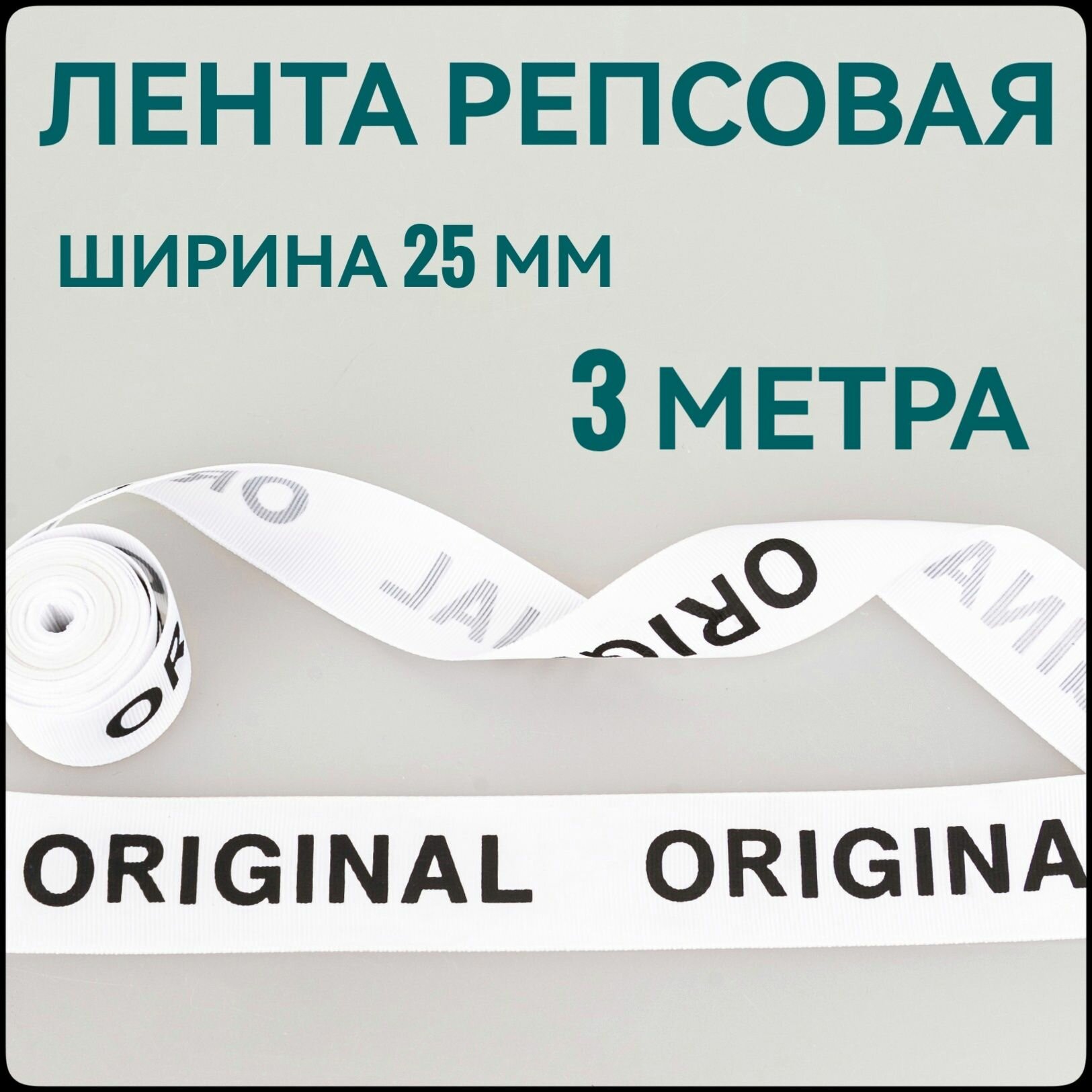 Лента/ тесьма репсовая для шитья черный на белом с принтом ORIGINAL ш.25 мм, в уп.3 м, для шитья, творчества, рукоделия. информация: