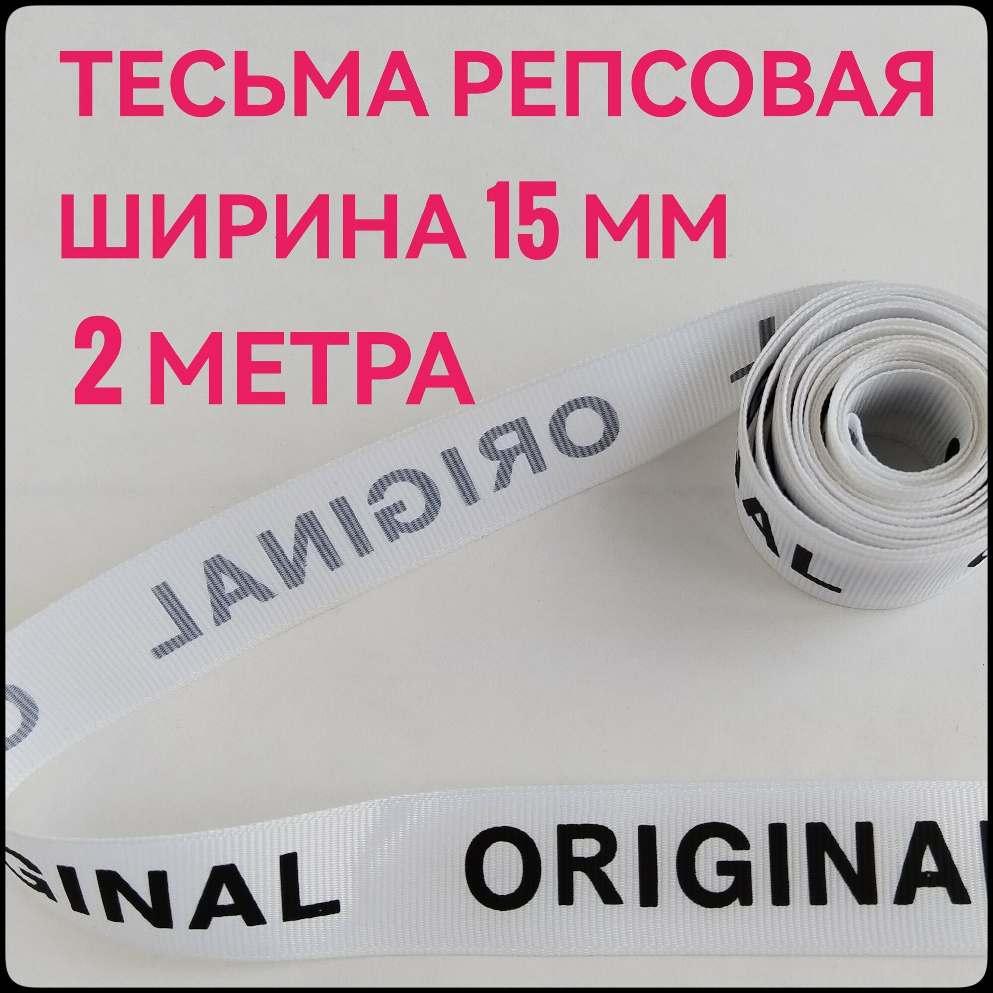 Отзывы на Лента/ тесьма репсовая для шитья черный на белом с принтом ORIGINAL ш.15 мм, в уп.2 м, для шитья, творчества, рукоделия.